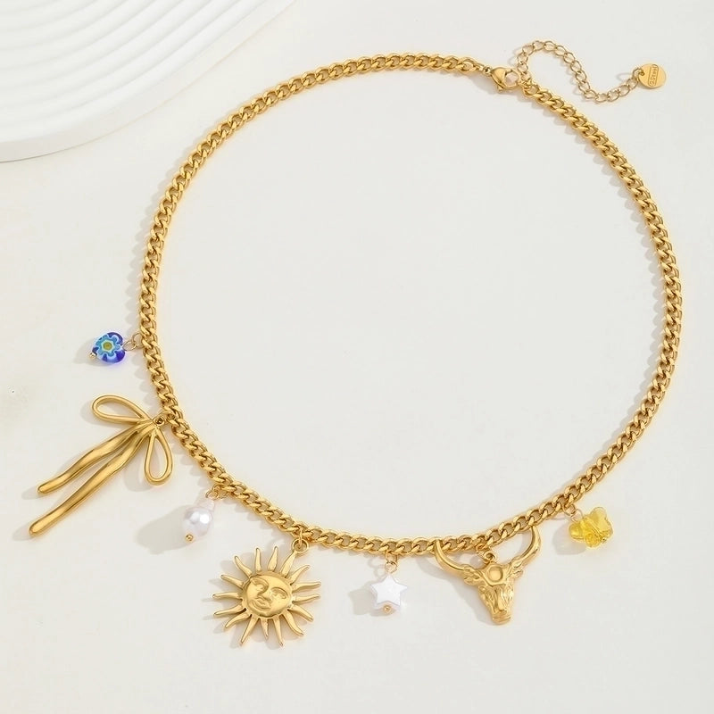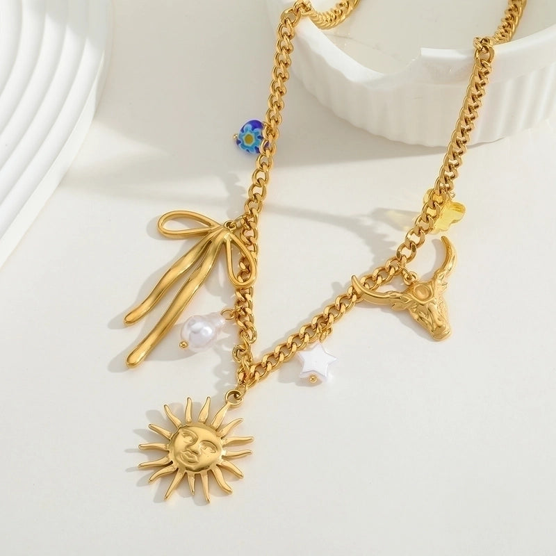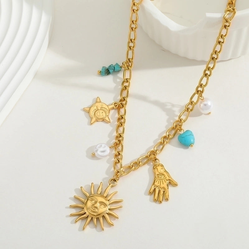 Be the first to review “Elegant Vacation Sun 304 Stainless Steel Imitation Pearl 18K Gold Plated Inlay Multi Charms Necklace” Cancel reply