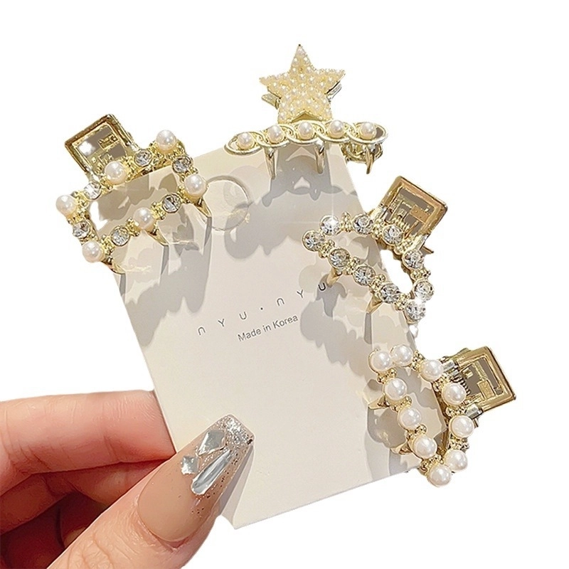 Elegant Women’s Geometric Flower Bow Knot Alloy Inlay Pearl Hair Claws