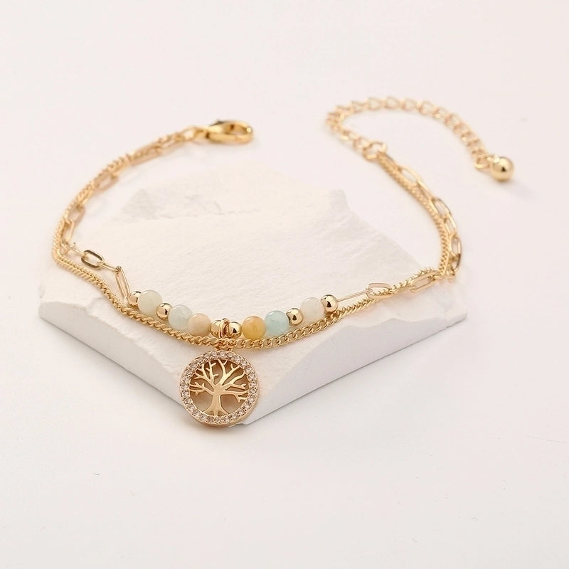 Ethnic Style Round Tree Copper Bracelets Plating Inlaid Zircon Copper Bracelets