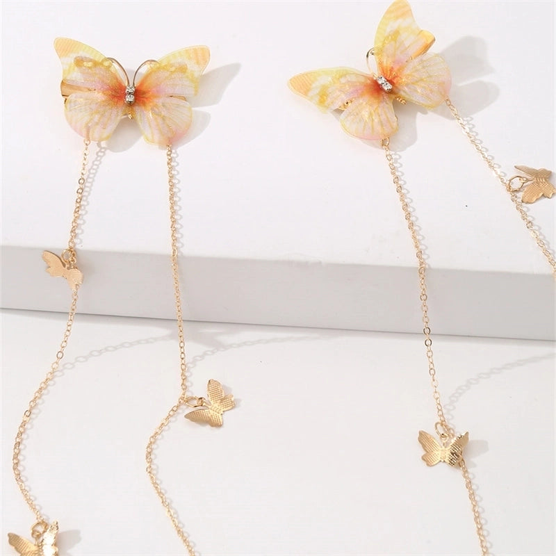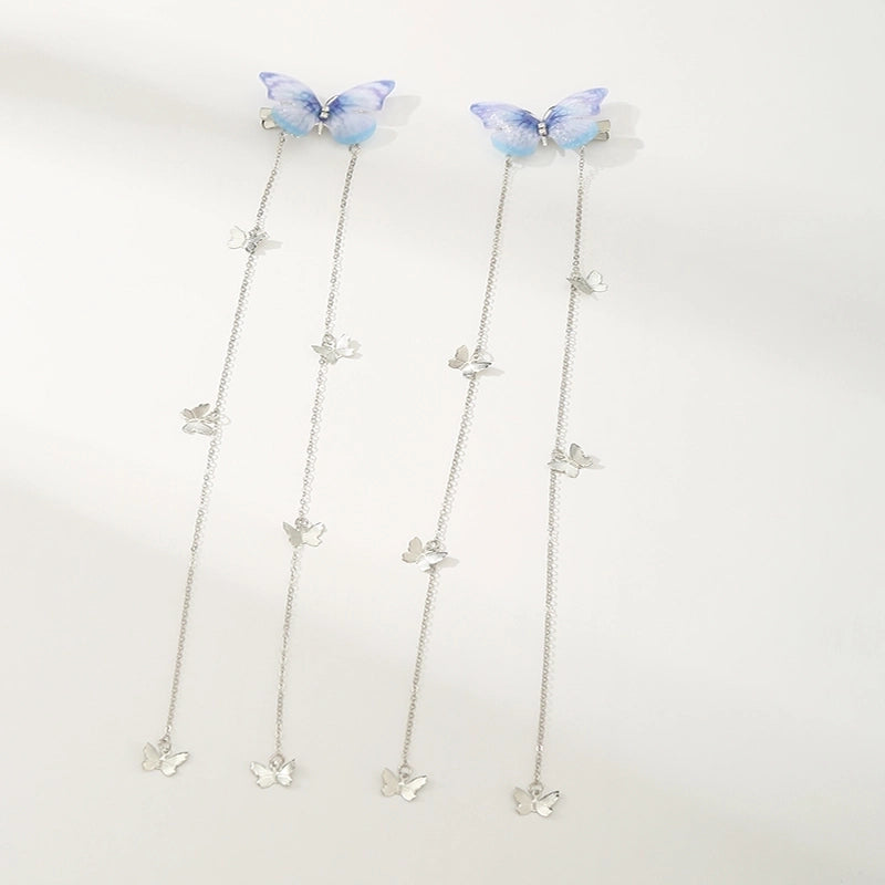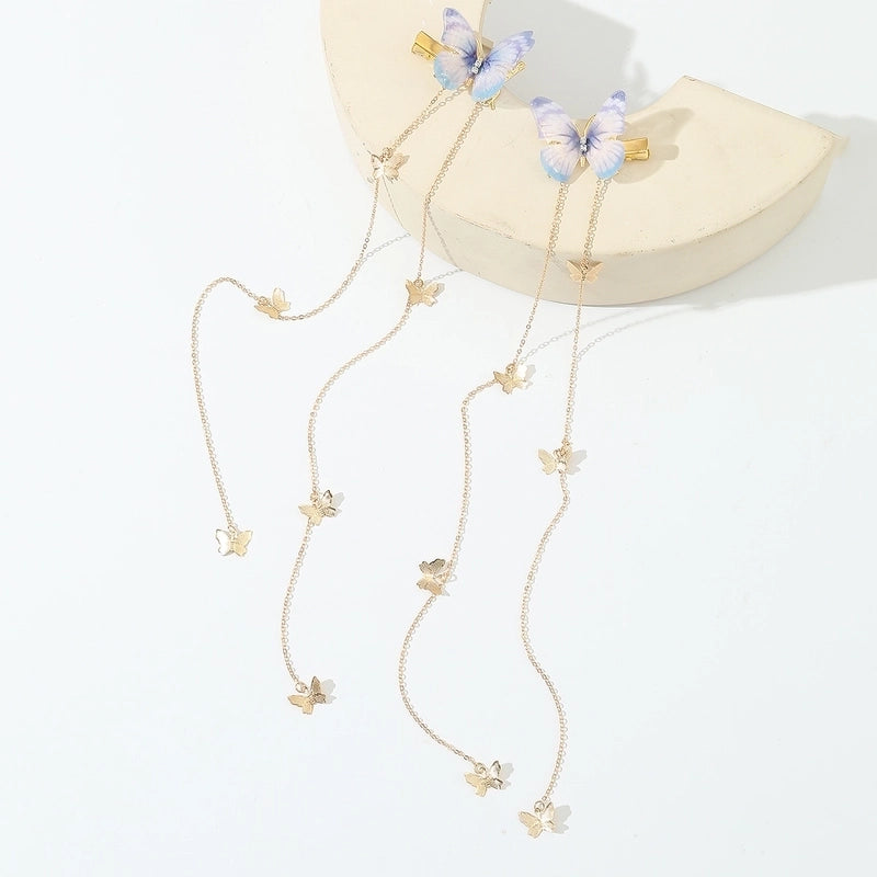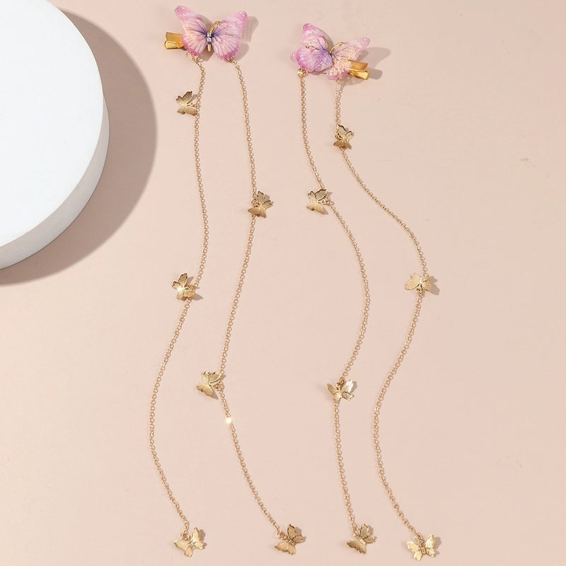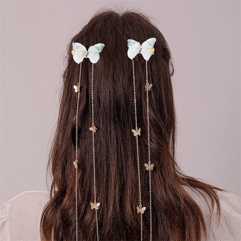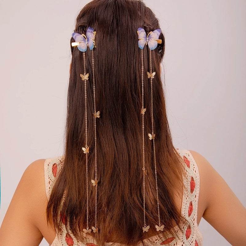 Europe And America Girls Vintage Antique Voile Butterfly Long Chain Grip Barrettes Leisure Daily Travel Hair Clip Headdress