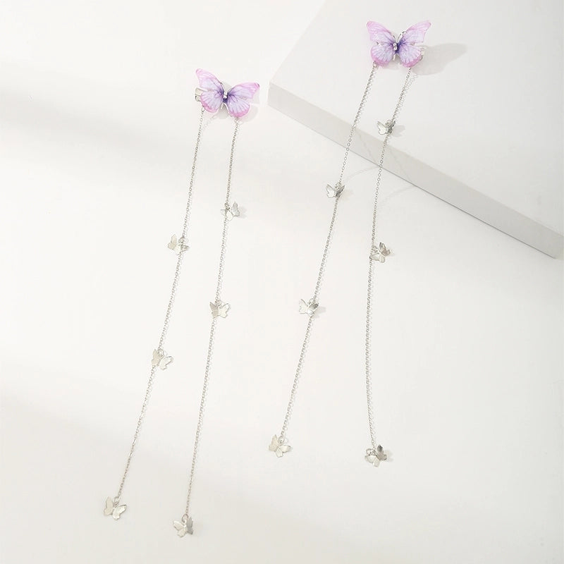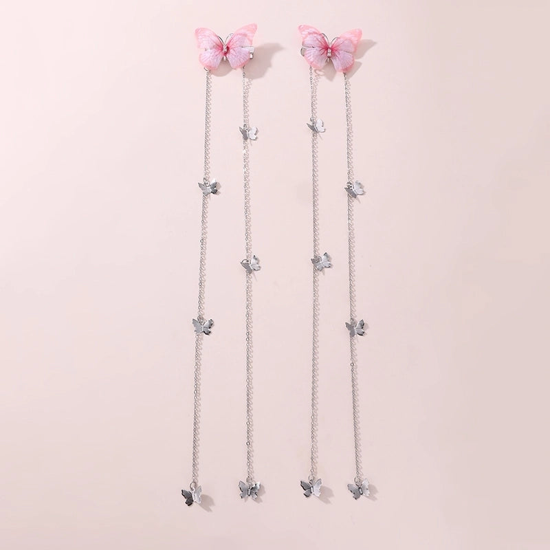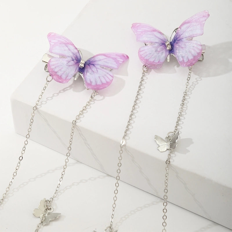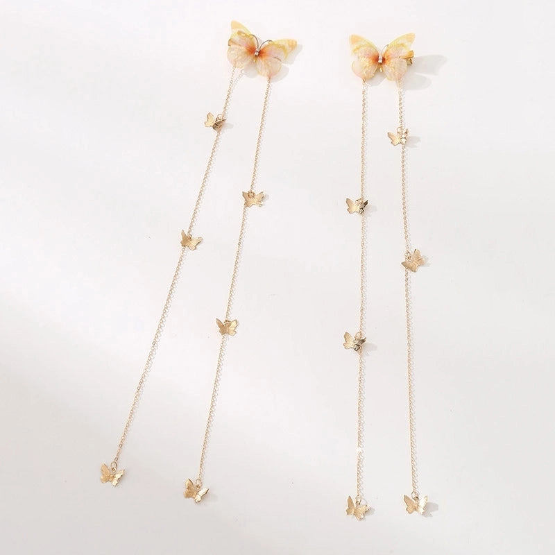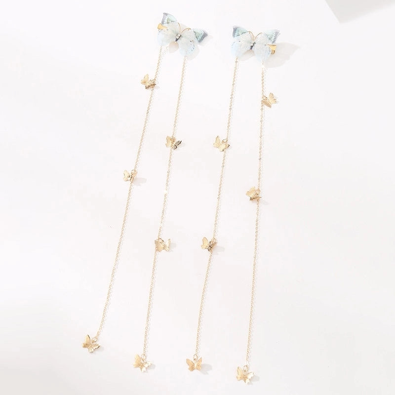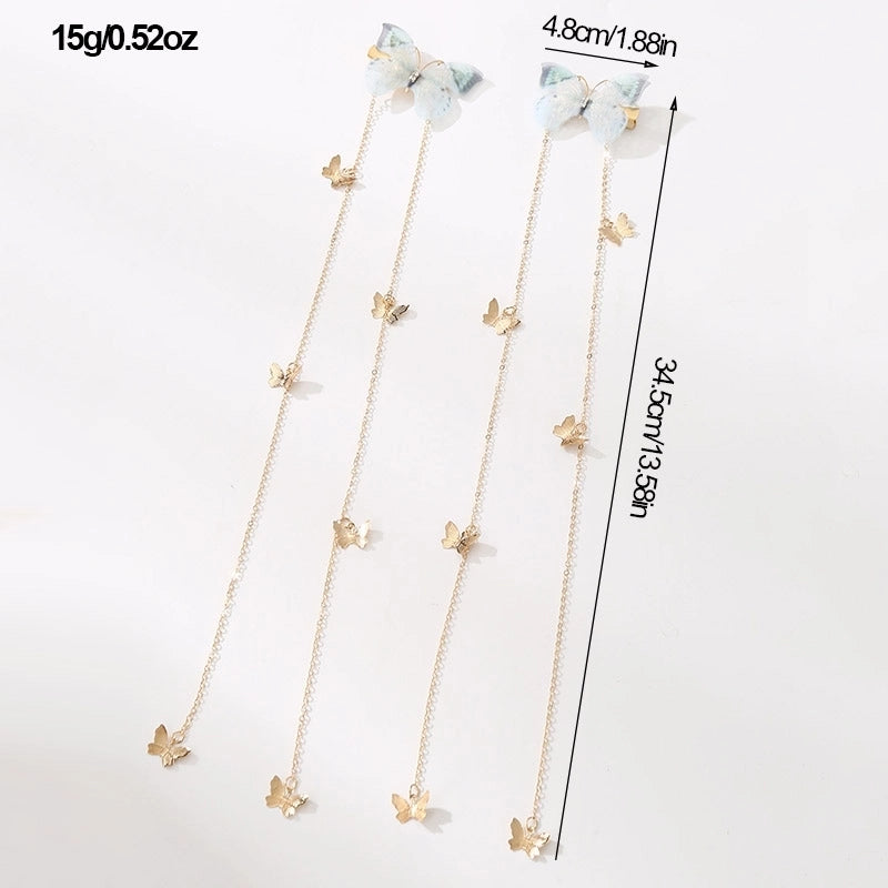 Europe And America Girls Vintage Antique Voile Butterfly Long Chain Grip Barrettes Leisure Daily Travel Hair Clip Headdress