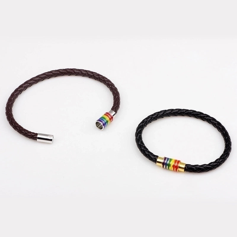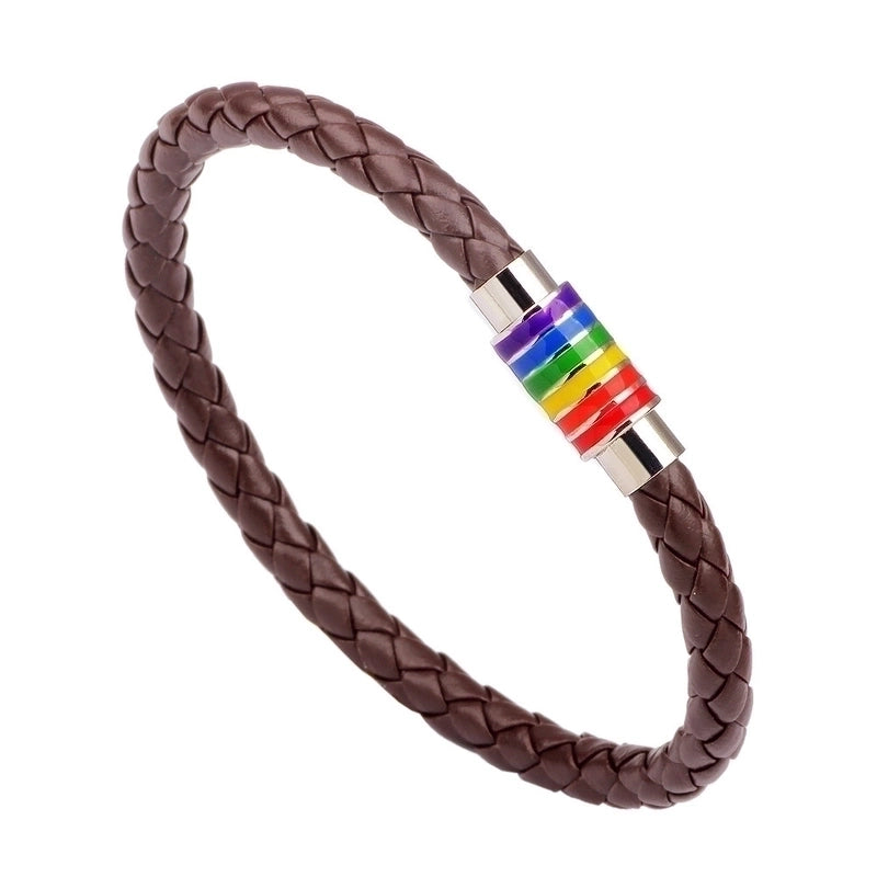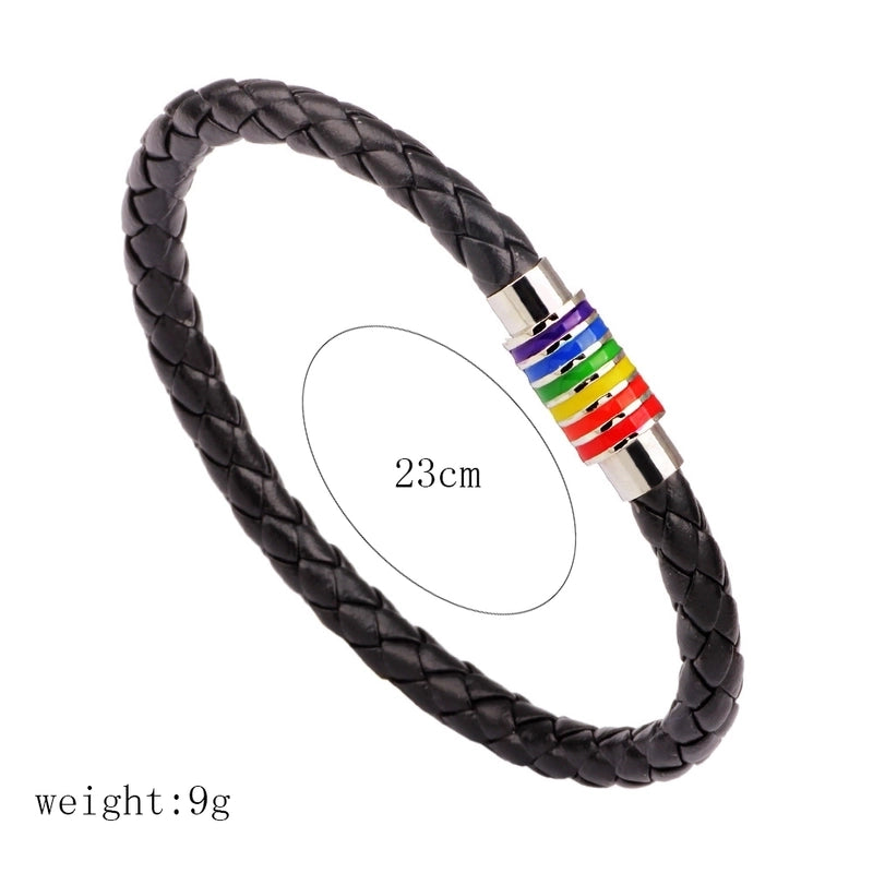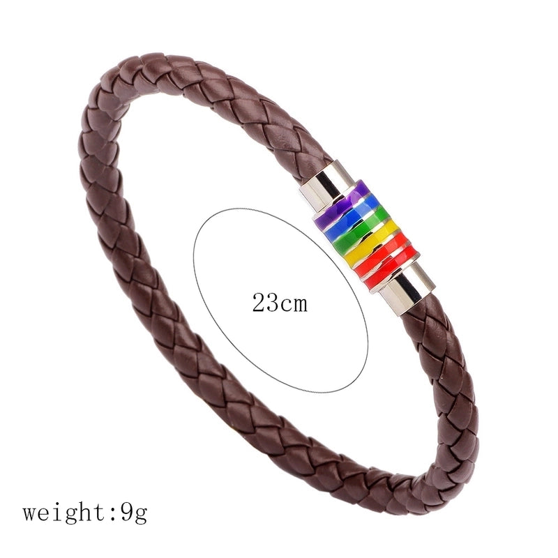 European And American Braided Leather Rainbow Colorful Bracelet