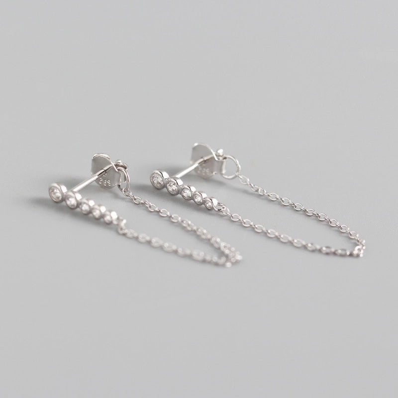 European And American Temperament Long Earrings S925 Sterling Silver Geometric Tassels Earrings