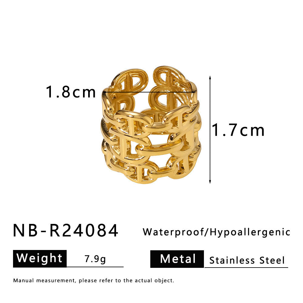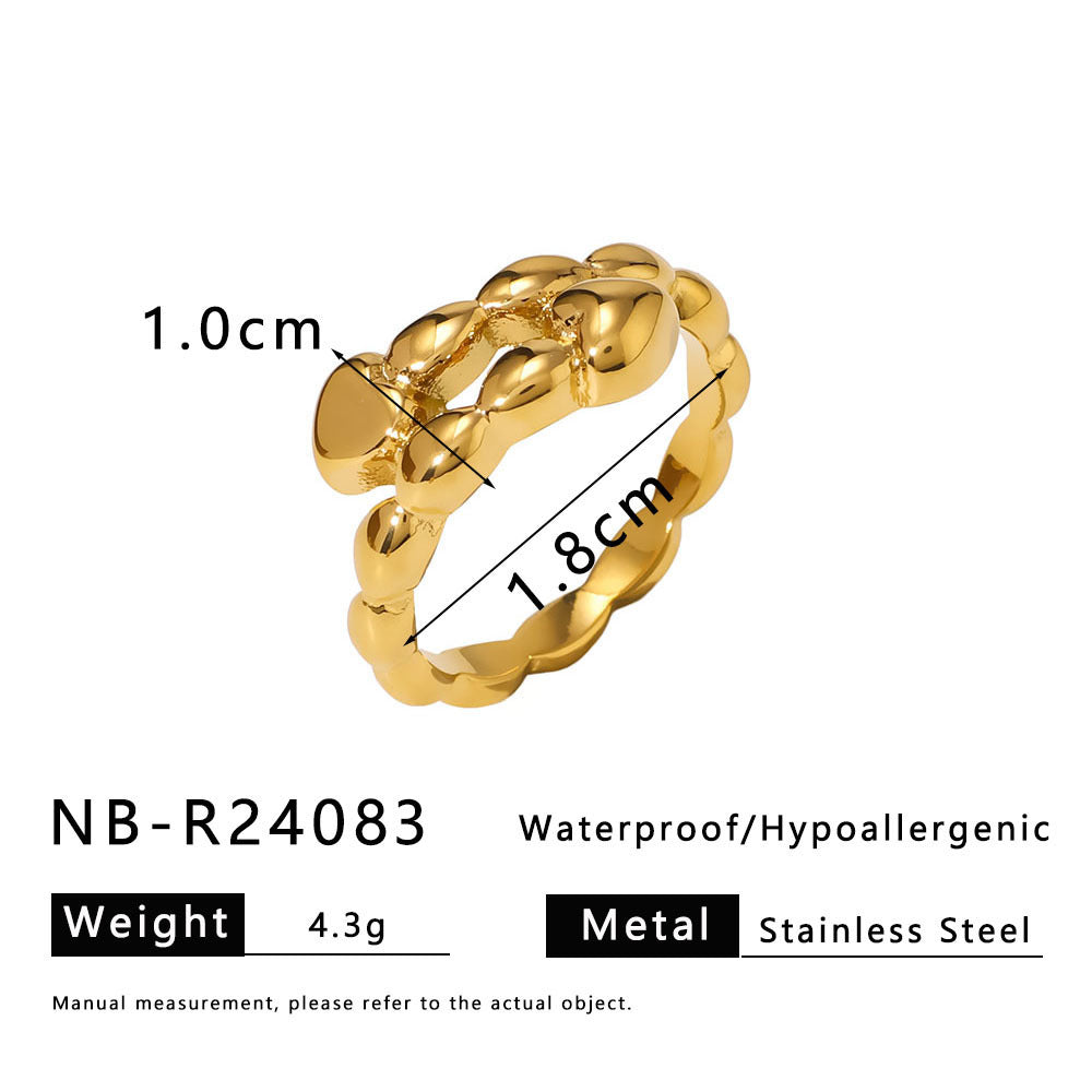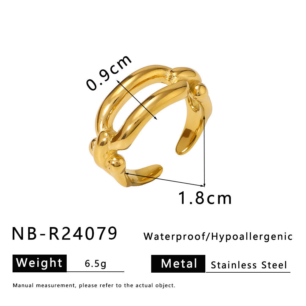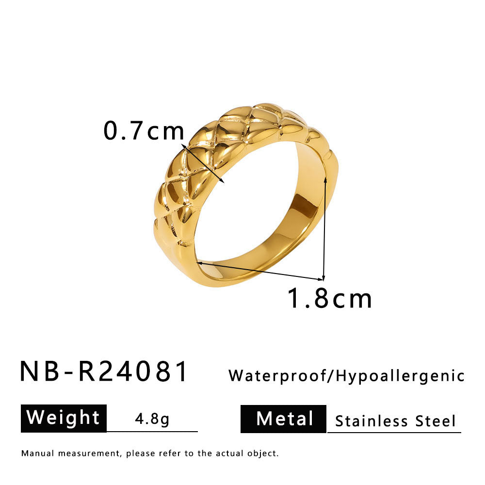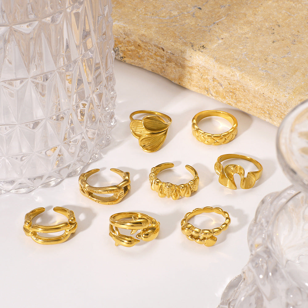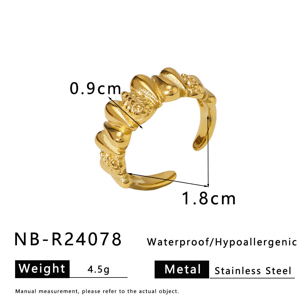 Exaggerated Style Titanium Steel Geometric Niche Pleated Three-Dimensional Petal Design Gold-Plated Ring Fashionable Women