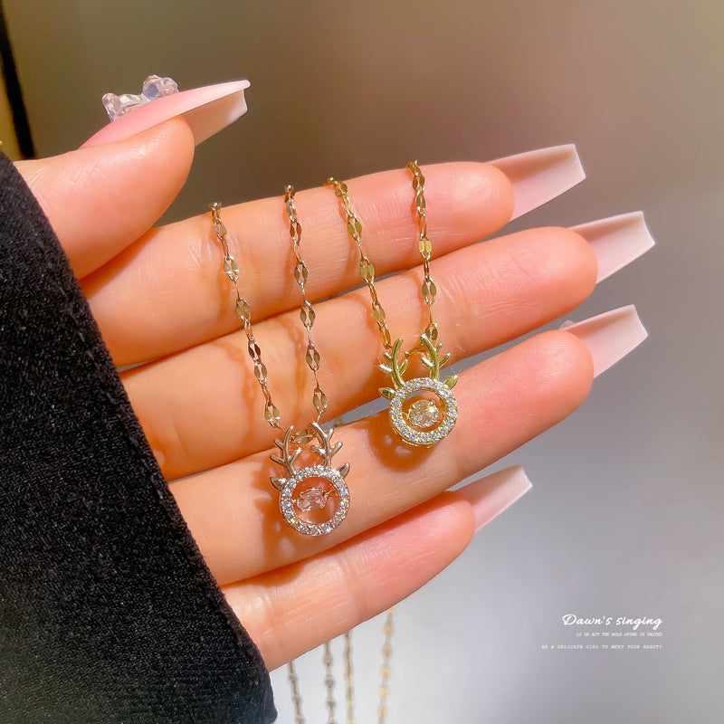 Exotic Women Seahorse Geometric Titanium Steel Diamond Inlay Necklaces