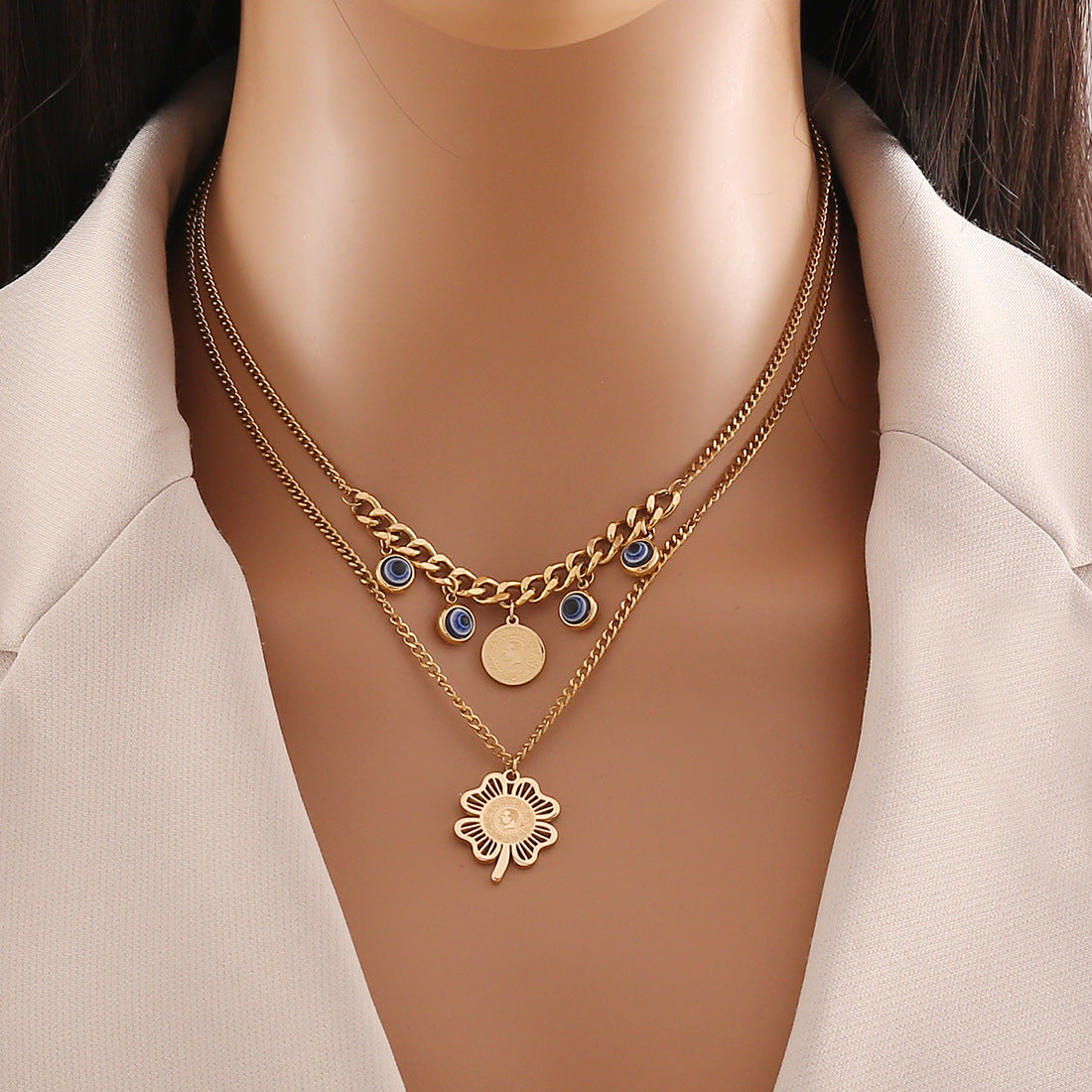 Expressive Eye Flower Stainless Steel Electroplating Necklaces