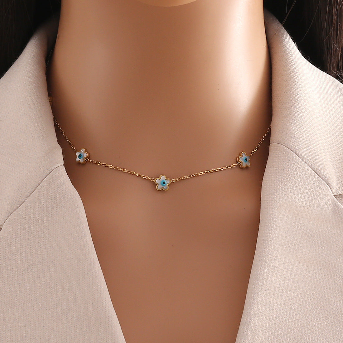 Expressive Eye Heart Star Flower Stainless Steel Oil Dripping Necklaces