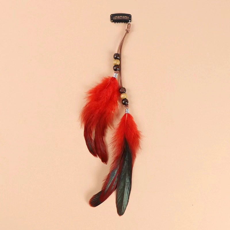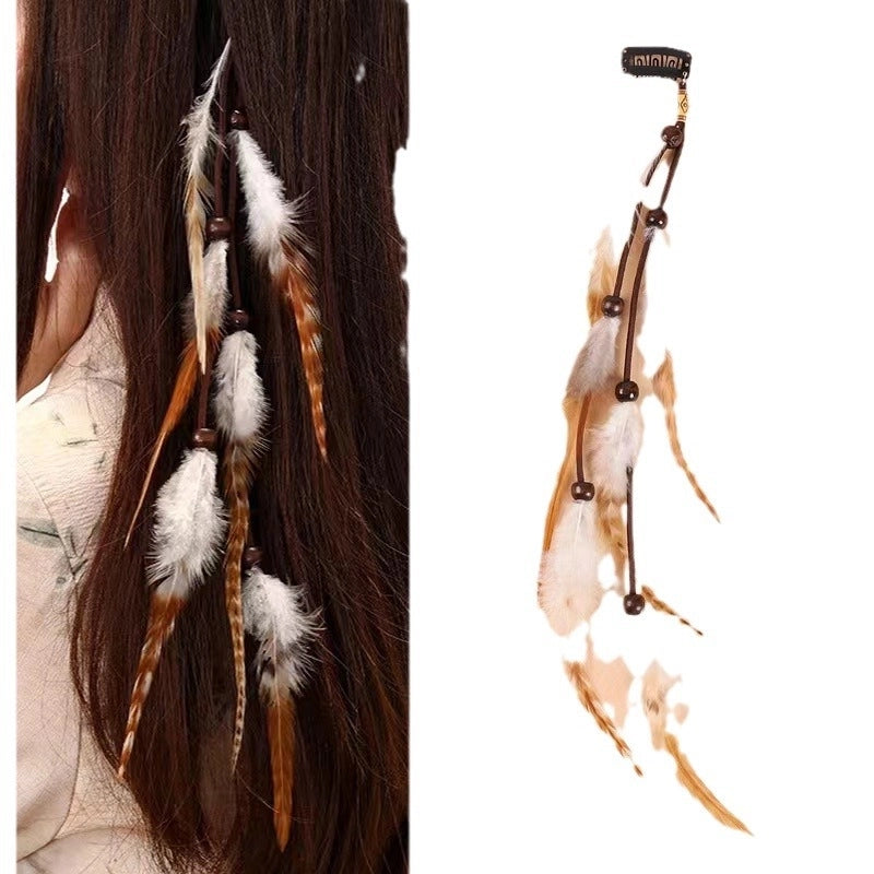 Factory Direct Ethnic Style Holiday Headdress Indian Feather Hair Accessories BB Clip Feather Tassel Hairpin