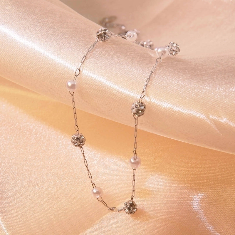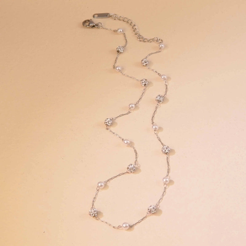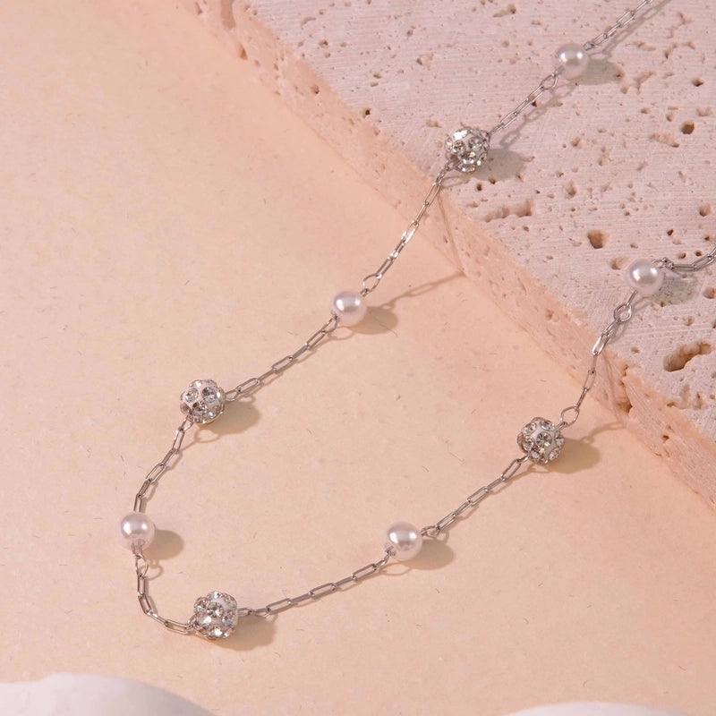 Fairy Style French Style Solid Color 304 Stainless Steel Rhinestones Pearl Inlay Stainless Steel Necklaces