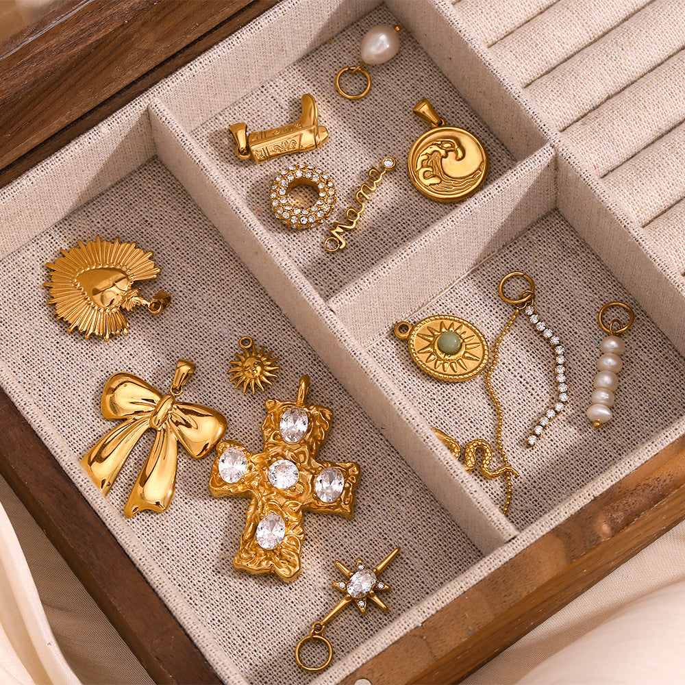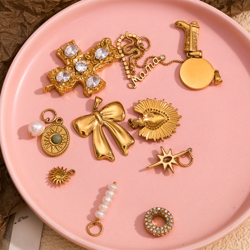 | Color | Wave Pendant – Gold, 5MM pearl pendant, 8mm pearl pendant, Circular Pendant – White Diamond, Tassel Chain Pendant – White Diamond, Sun pendant, Boot pendant, Cross Pendant – Gold – White Diamond, Sun Smile Pendant, Octagonal Star Pendant, Snake pendant, Mama pendant, Bow pendant, Love pendant  |