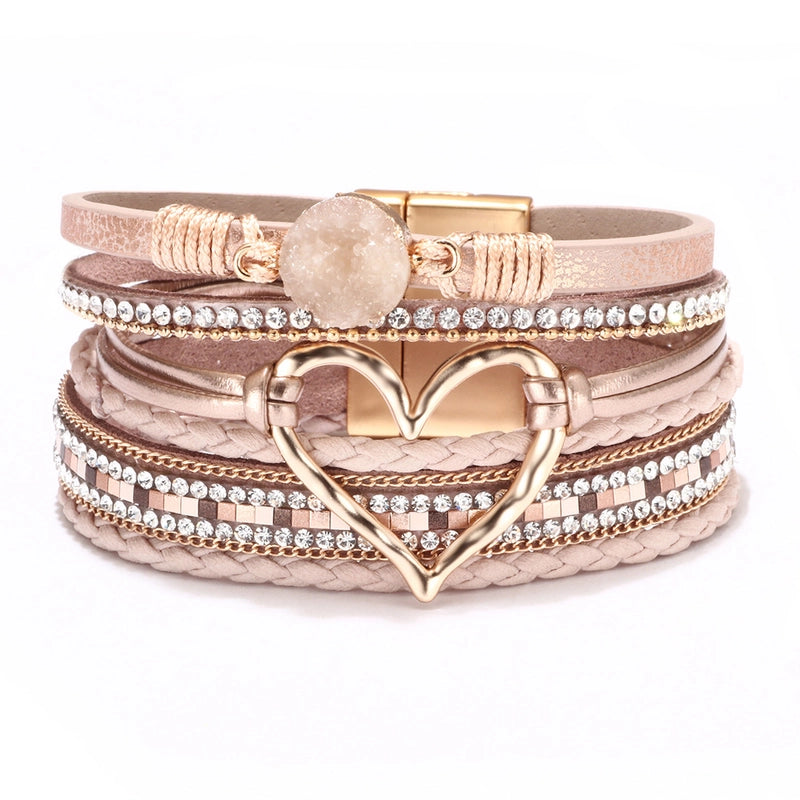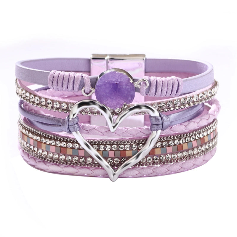 Fashion Bracelet Female Bohemian Love Rhinestone Magnetic Bracelet PU Artificial Leather Soft Bracelet