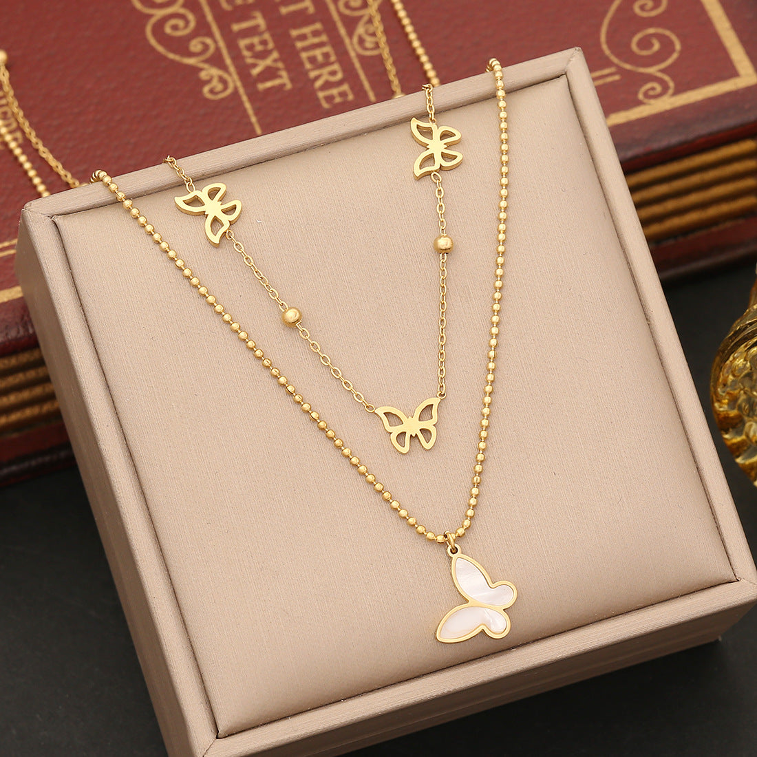 Fashion Butterfly Insect Stainless Steel Electroplating Necklaces