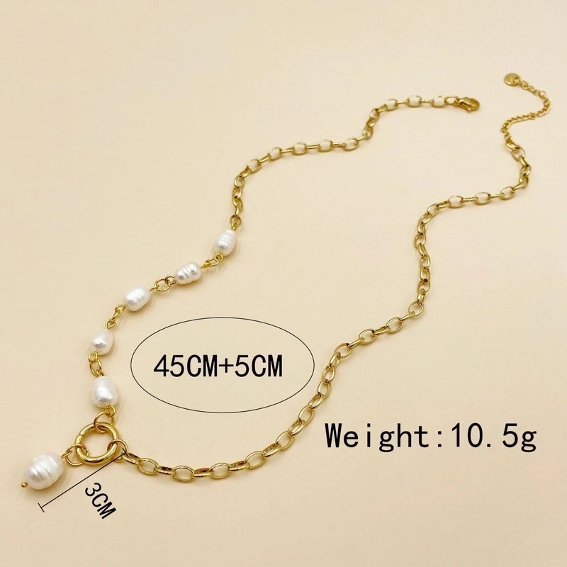 Fashion Circle 304 Stainless Steel Pearl 14K Gold Plated Pearl Plating Stainless Steel Necklaces
