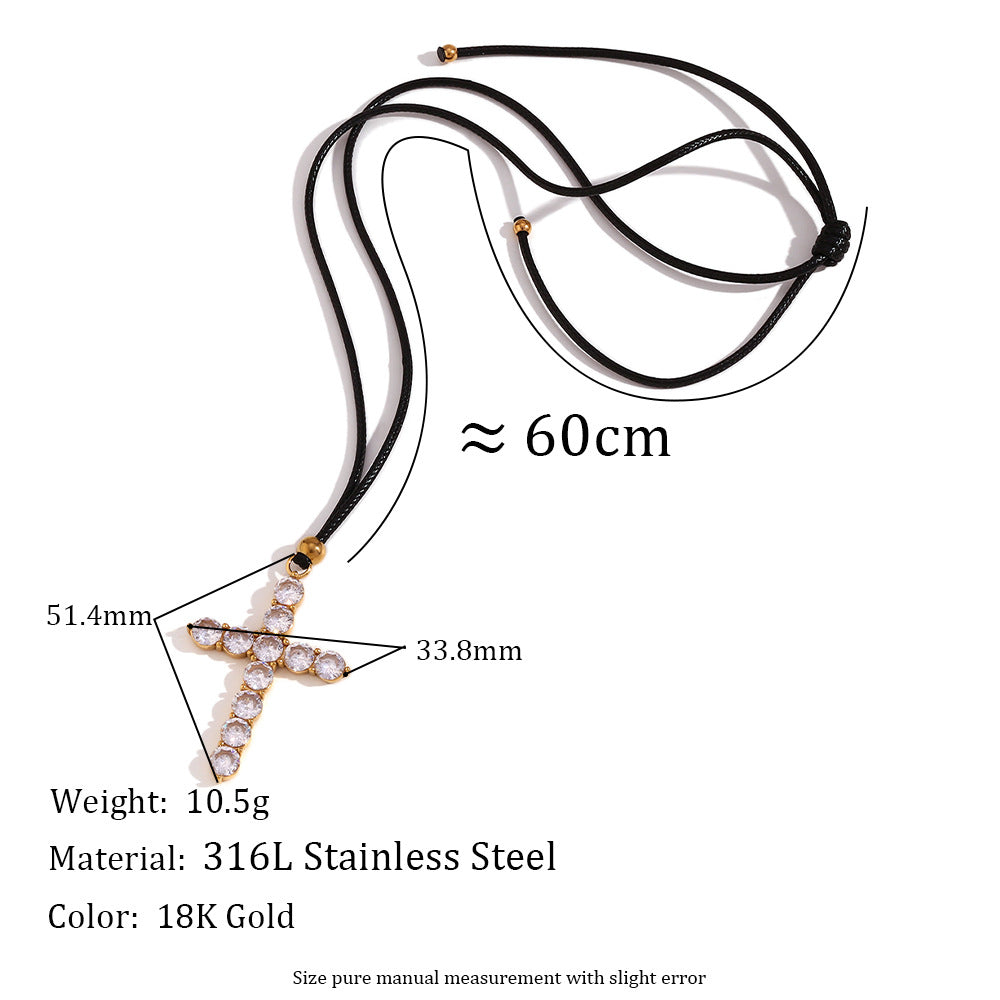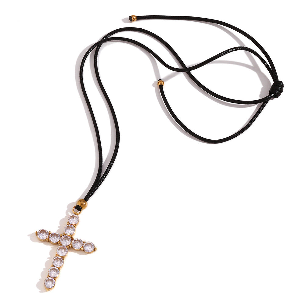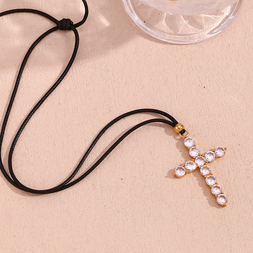 | Color | Zircon Cross Rope Chain Necklace – Gold – Black Rope |
