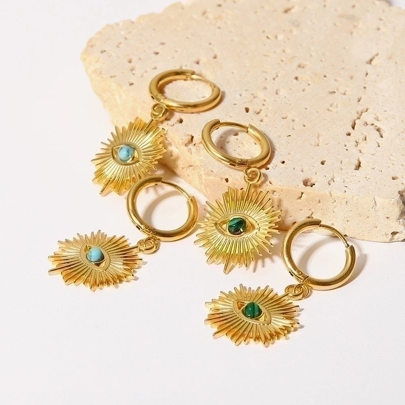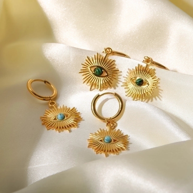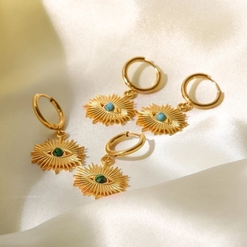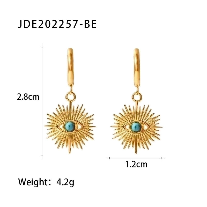 Fashion Devil’s Eye Stainless Steel Drop Earrings Inlay Turquoise Stainless Steel Earrings