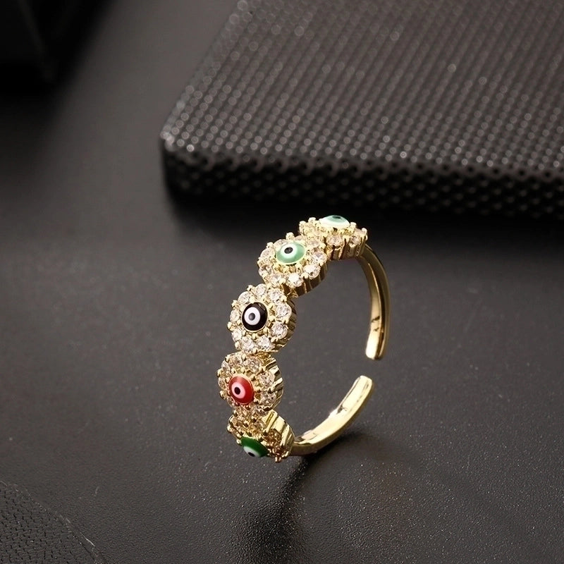 Copper 18K Gold Plated Fashion Gold Plated Eye Zircon Open Ring