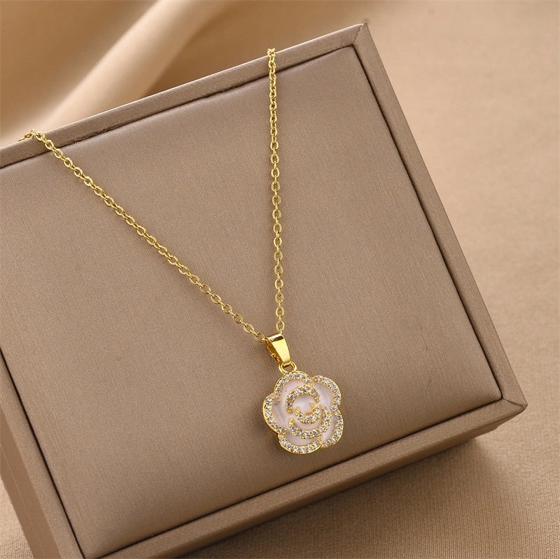 Be the first to review “Fashion Flower Titanium Steel Inlay Rhinestones Pendant Necklace 1 Piece” Cancel reply