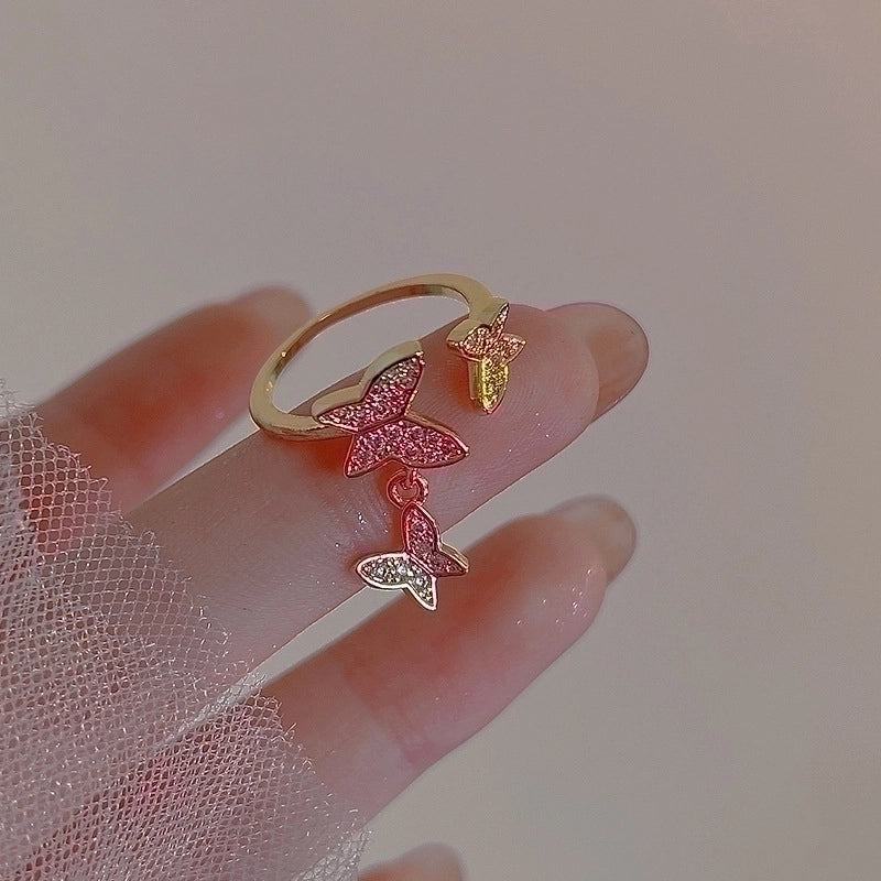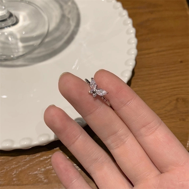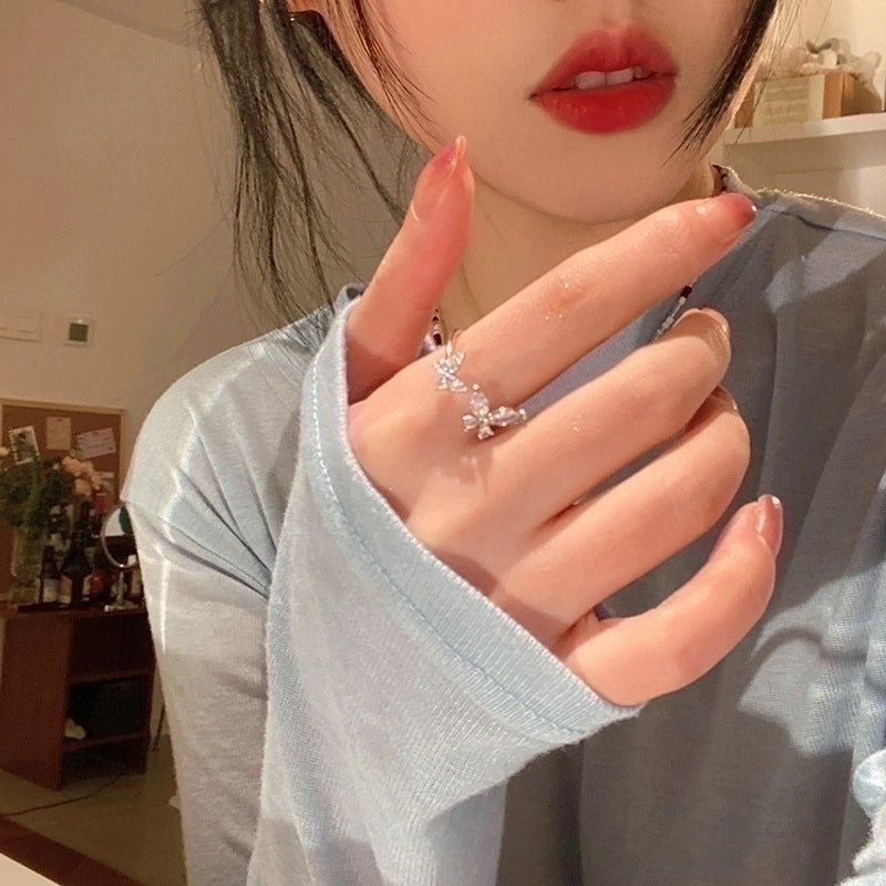 Fashion Geometric Butterfly Copper Open Ring Inlay Artificial Pearls Rhinestones Copper Rings 1 Piece