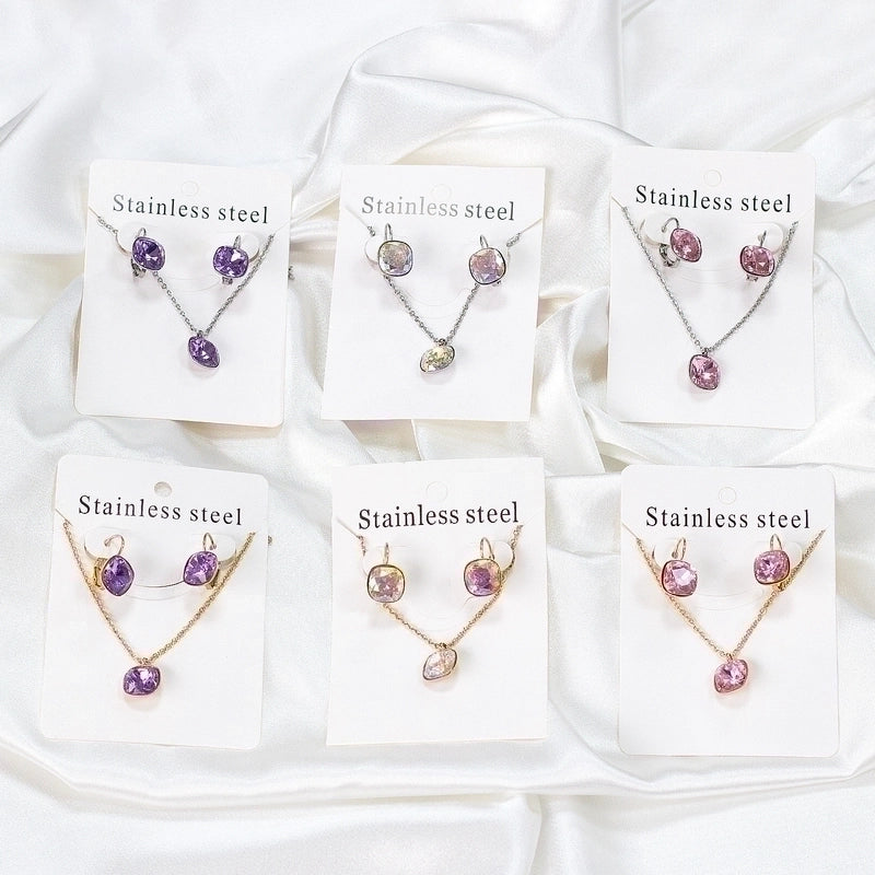 Be the first to review “Fashion Geometric Stainless Steel Artificial Gemstones Earrings Necklace 1 Set” Cancel reply