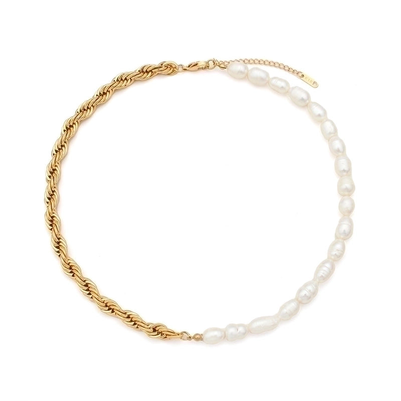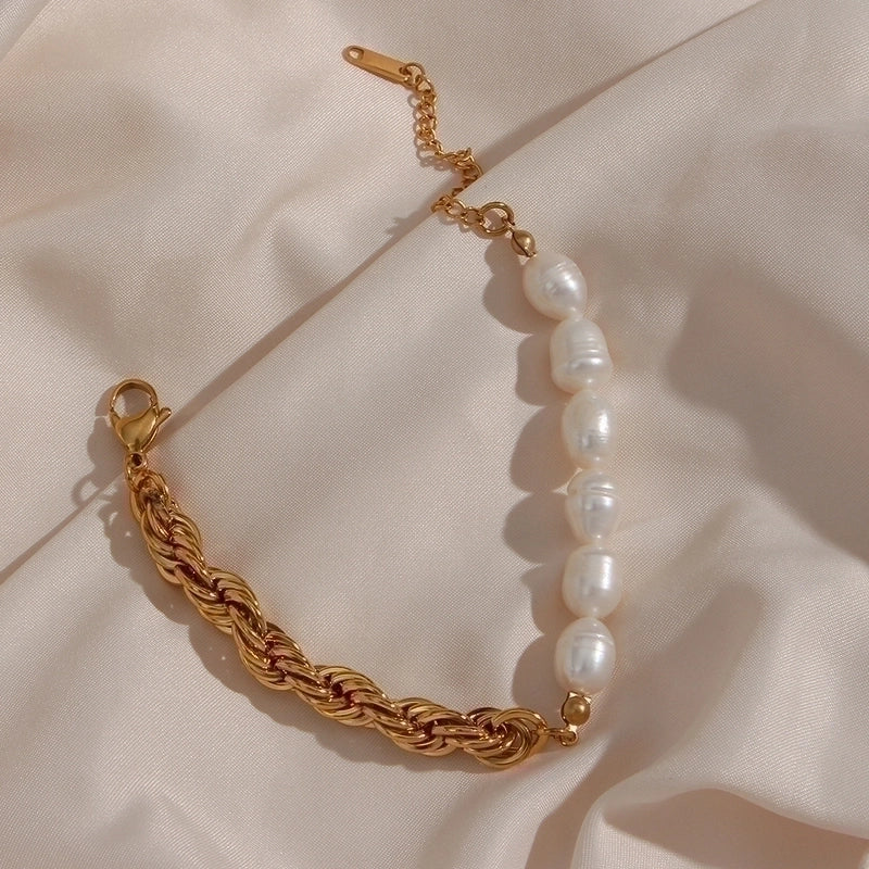 | Color | Thick Hemp Flowers Chain Pearl Stitching Bracelet, Freshwater Pearl Necklace |