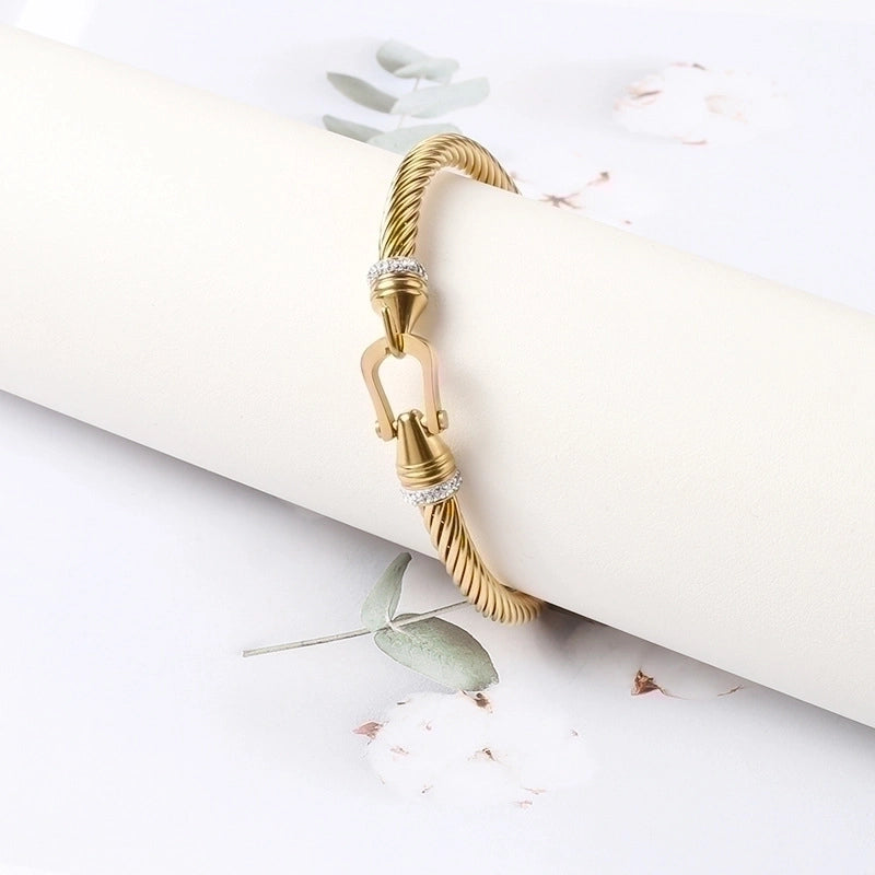 Fashion Geometric Titanium Steel Plating Artificial Diamond Bangle