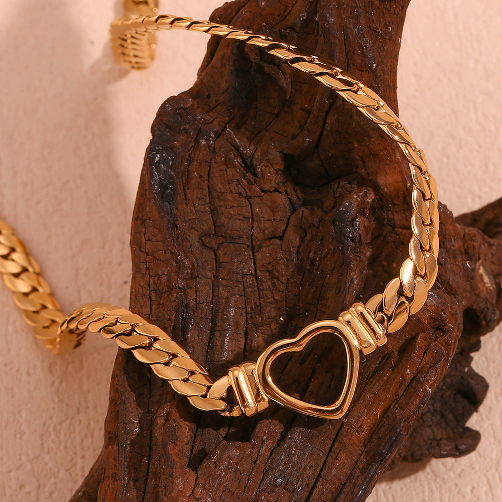 Fashion Heart Geometric Stainless Steel 18K Gold Plated Necklaces