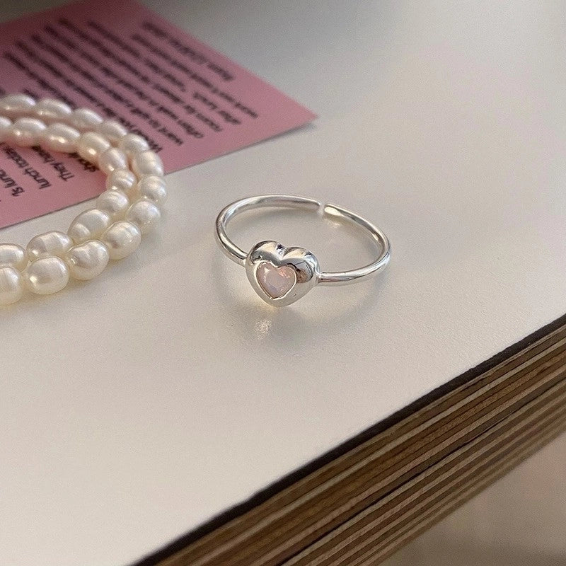 Alloy Silver Plated Inlay Heart Shape Flower Zircon Copper Rings