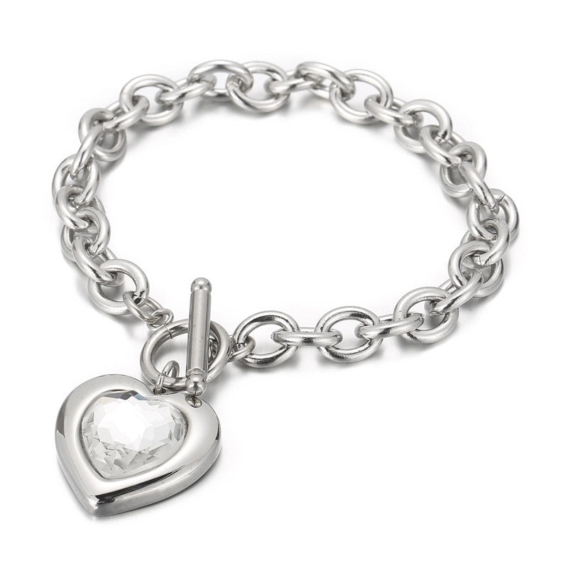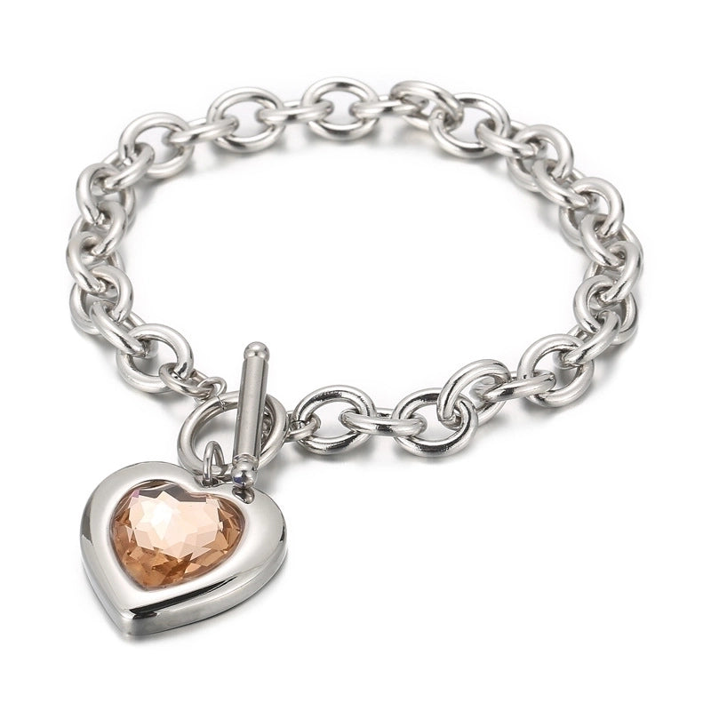 Be the first to review “Fashion Heart Shape Titanium Steel Bracelets Plating Inlay Glass Stainless Steel Bracelets” Cancel reply