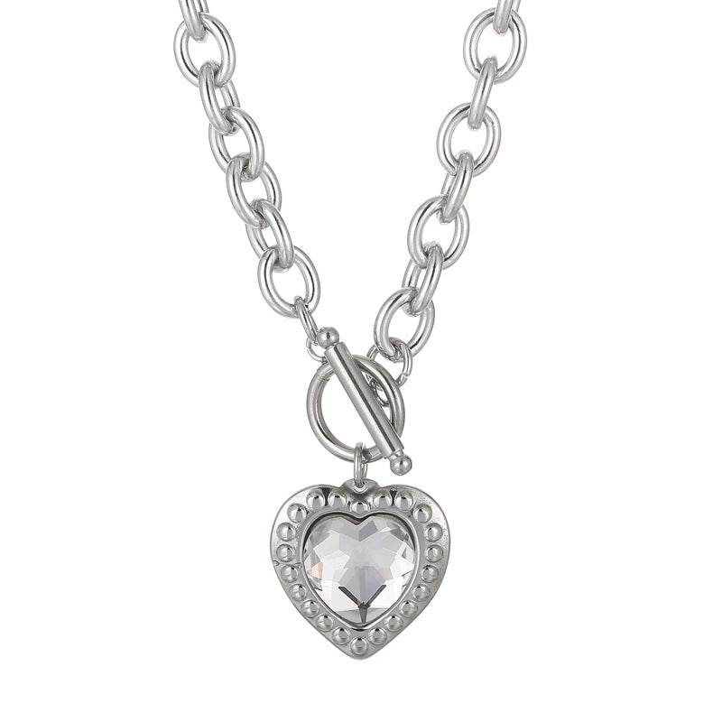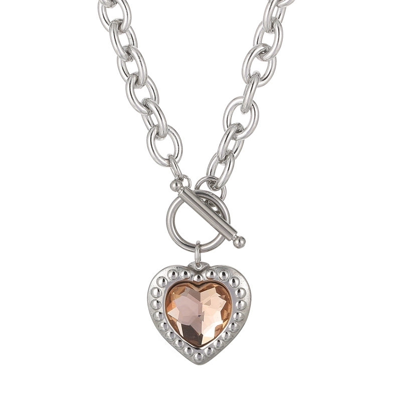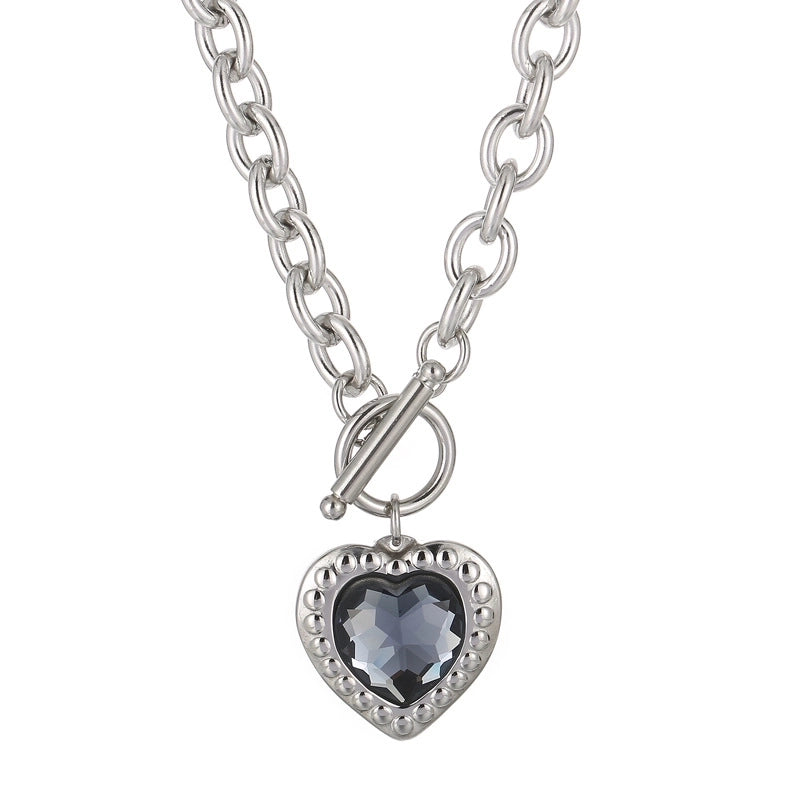 Fashion Heart Shape Titanium Steel Plating Inlay Glass Pendant Necklace 1 Piece