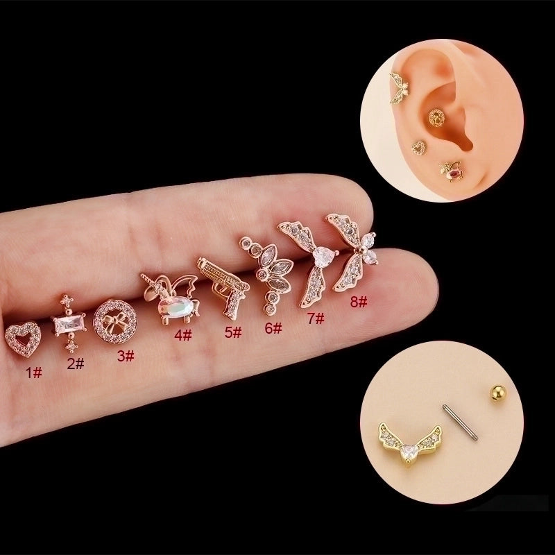 1 Piece Ear Cartilage Rings & Studs Fashion Heart Shape 316L Stainless Steel Copper Plating Zircon