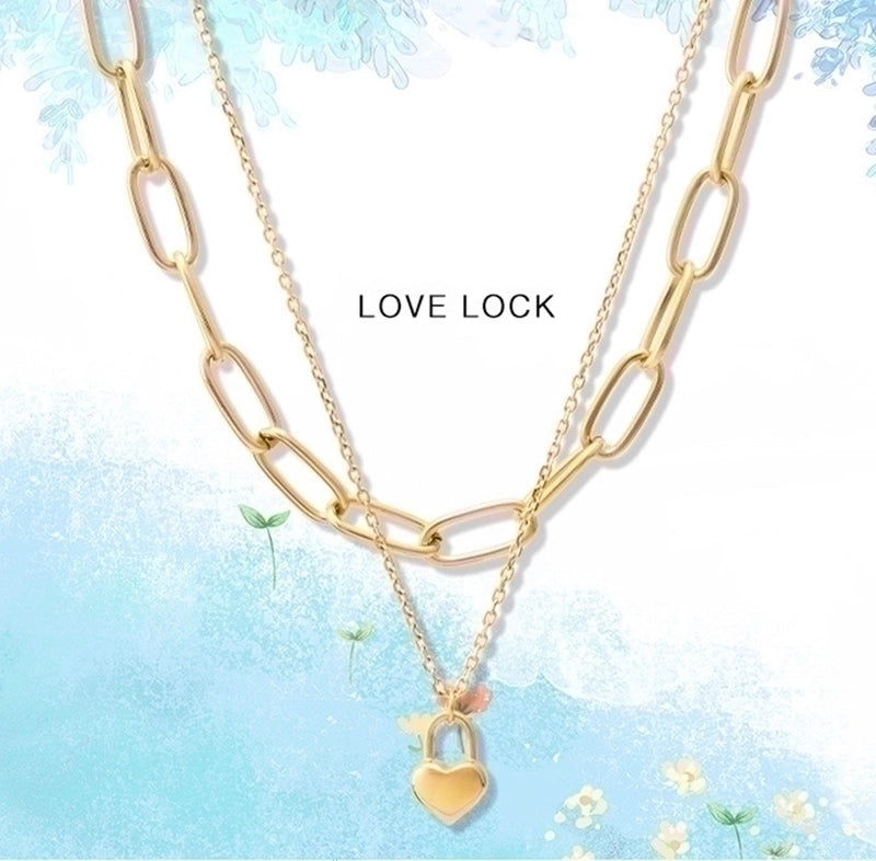 304 Stainless Steel 18K Gold Plated Hip-Hop Inlaid Gold Heart Necklace