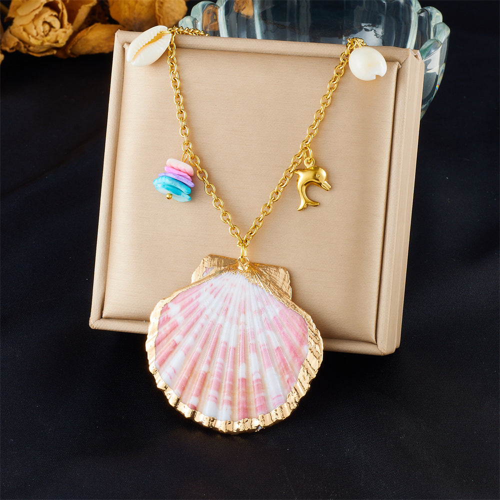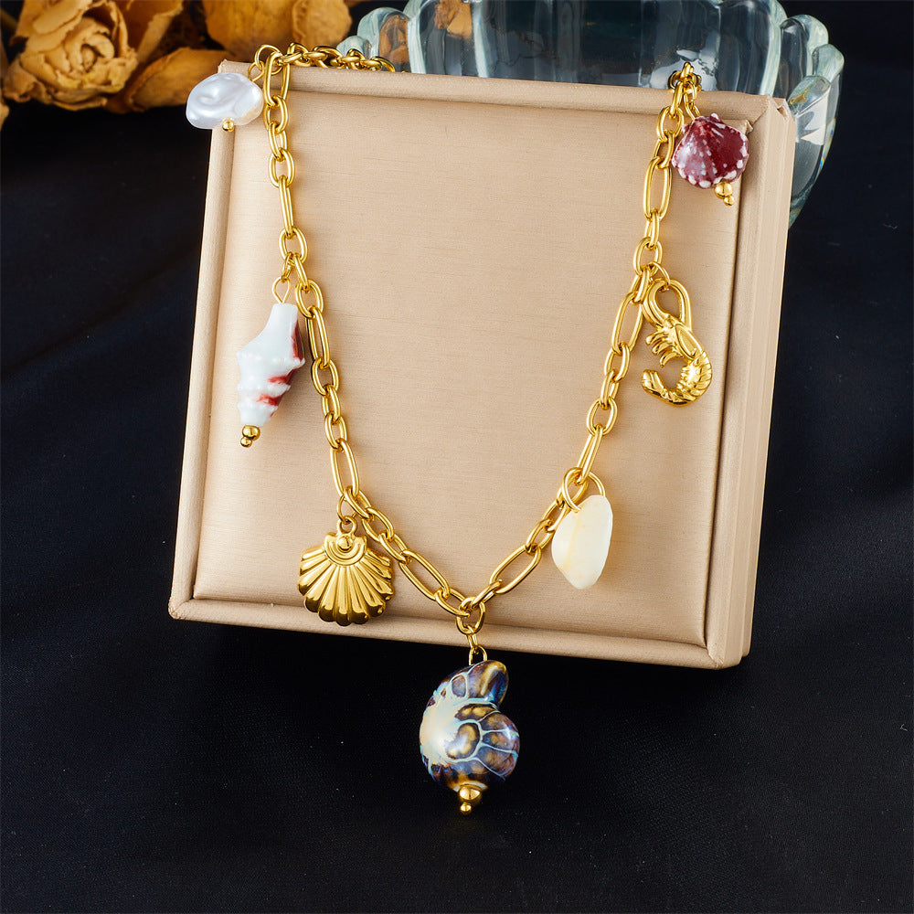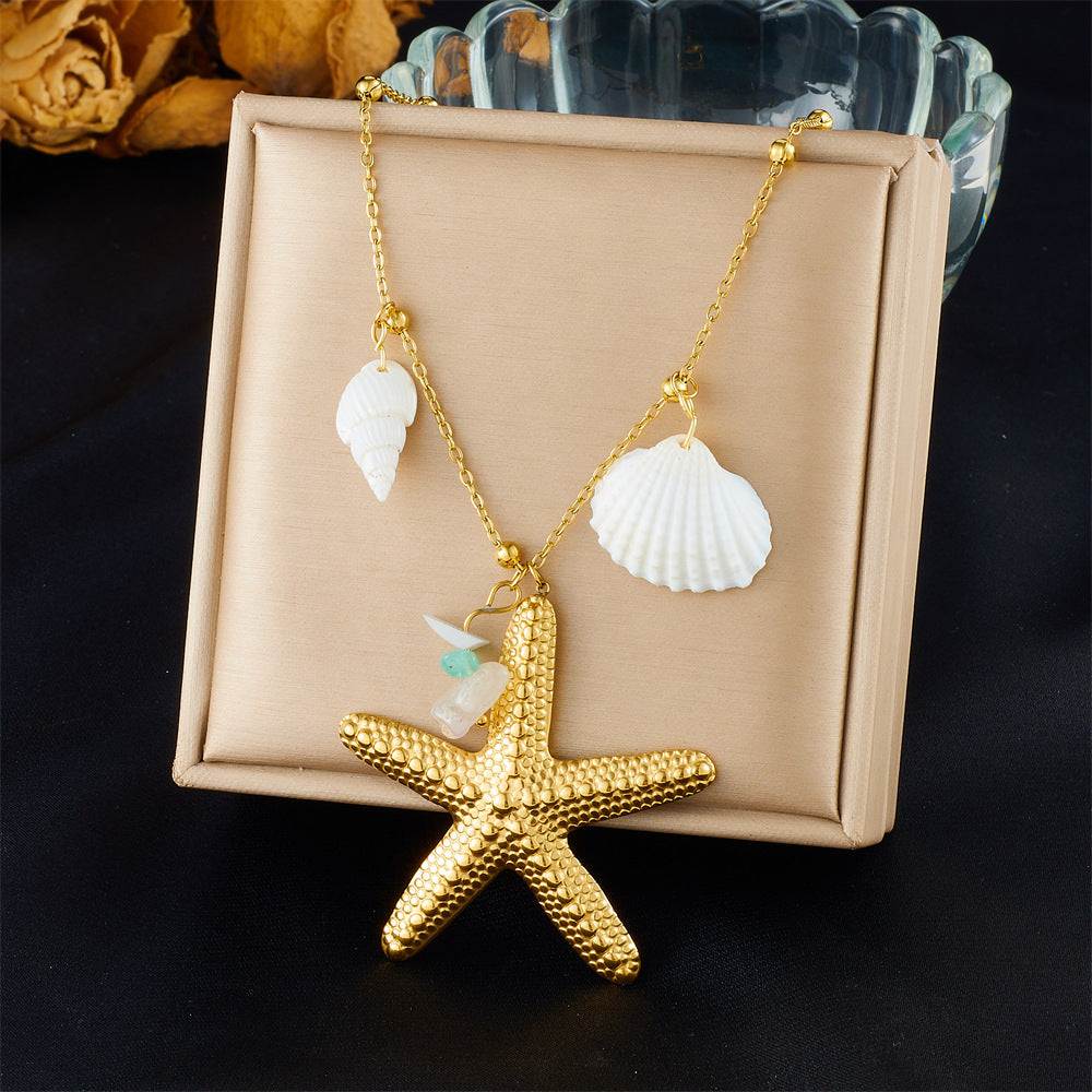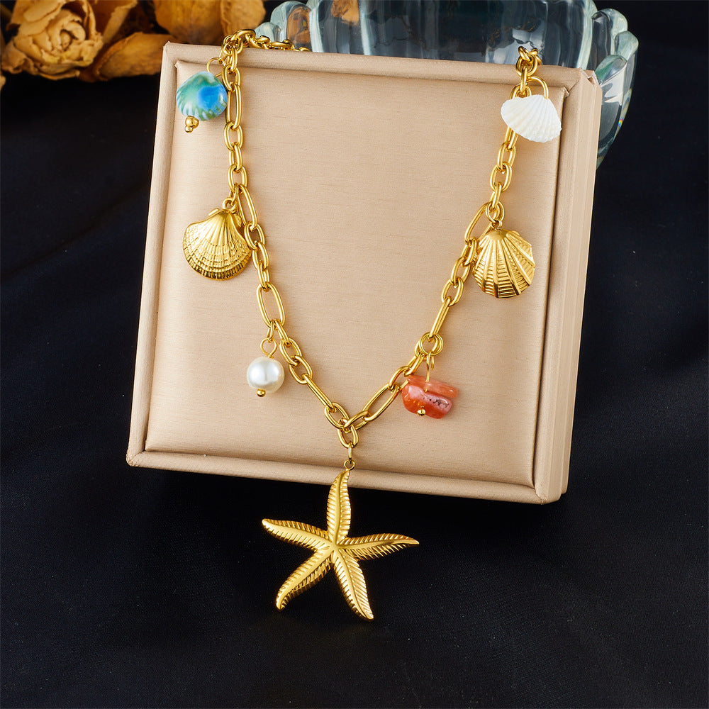 Fashion Holiday Advanced Multi-Element Marine Life Pendant Shell Starfish Sun Stainless Steel Necklace