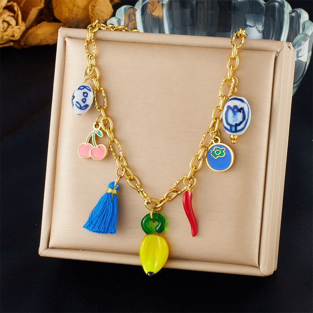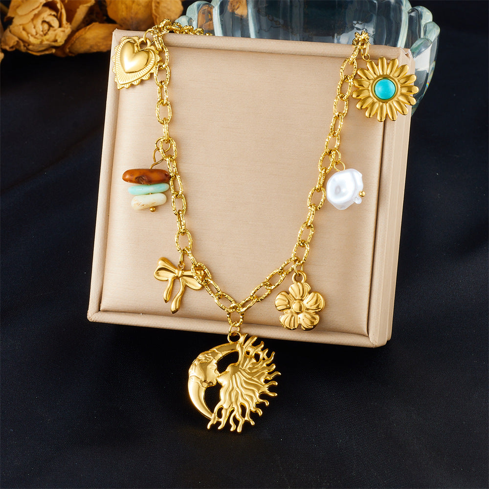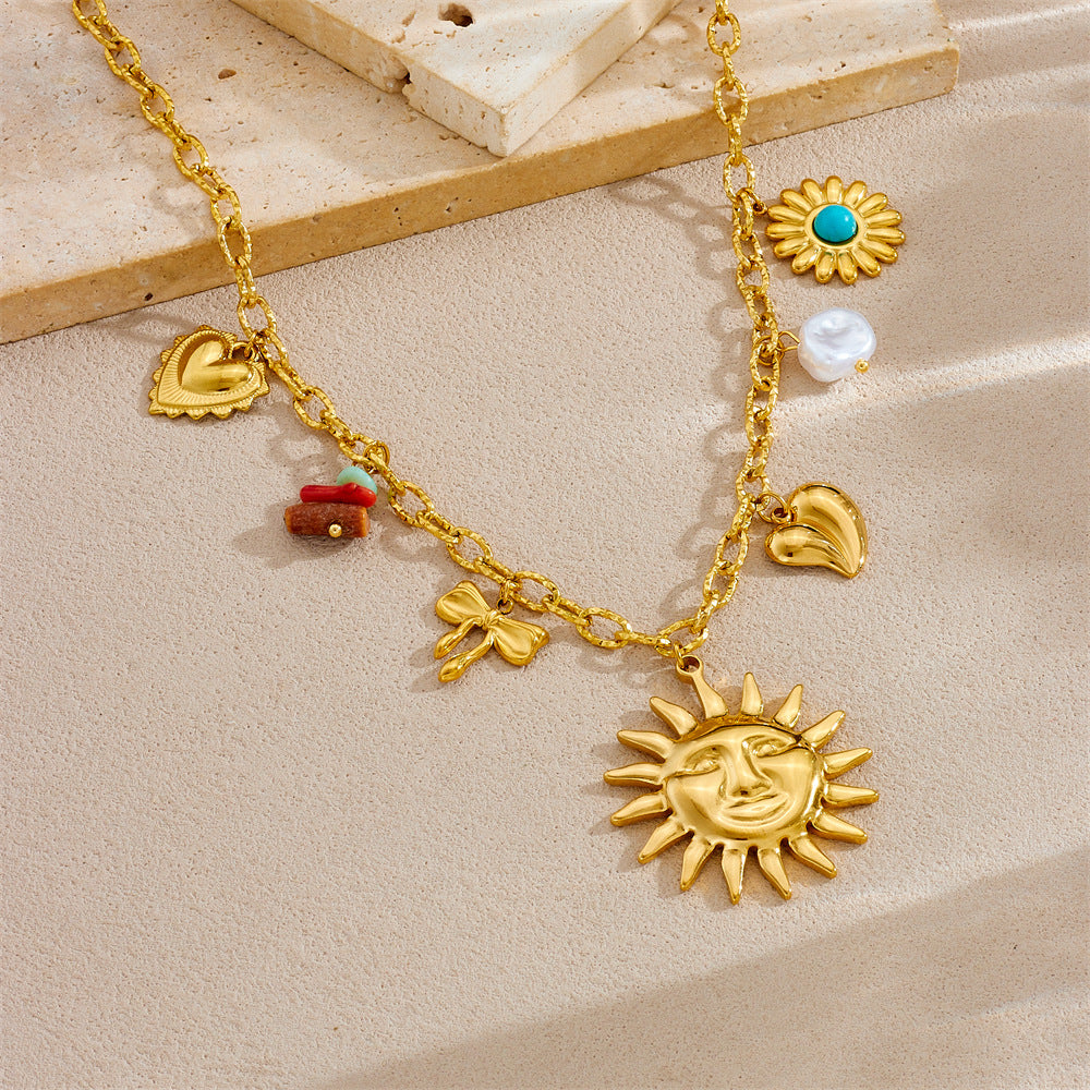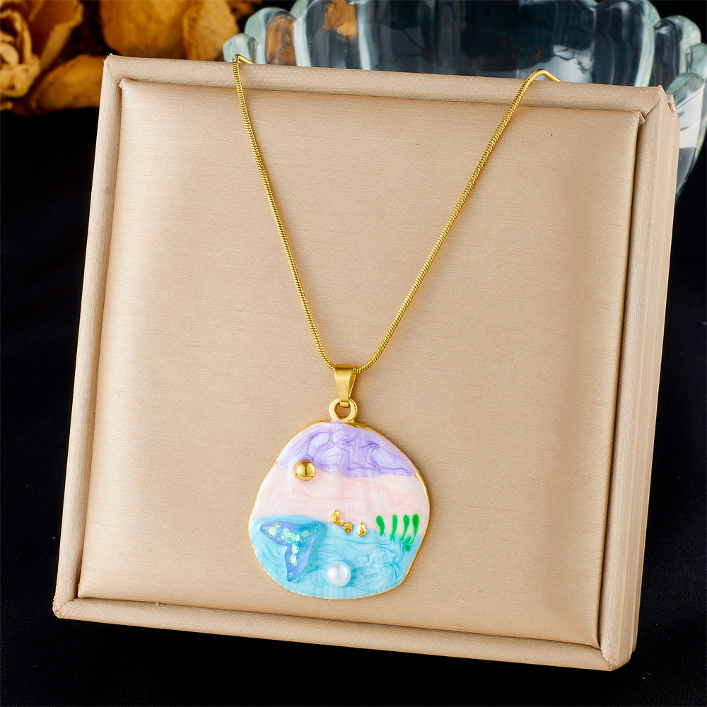 Fashion Holiday Advanced Multi-Element Marine Life Pendant Shell Starfish Sun Stainless Steel Necklace