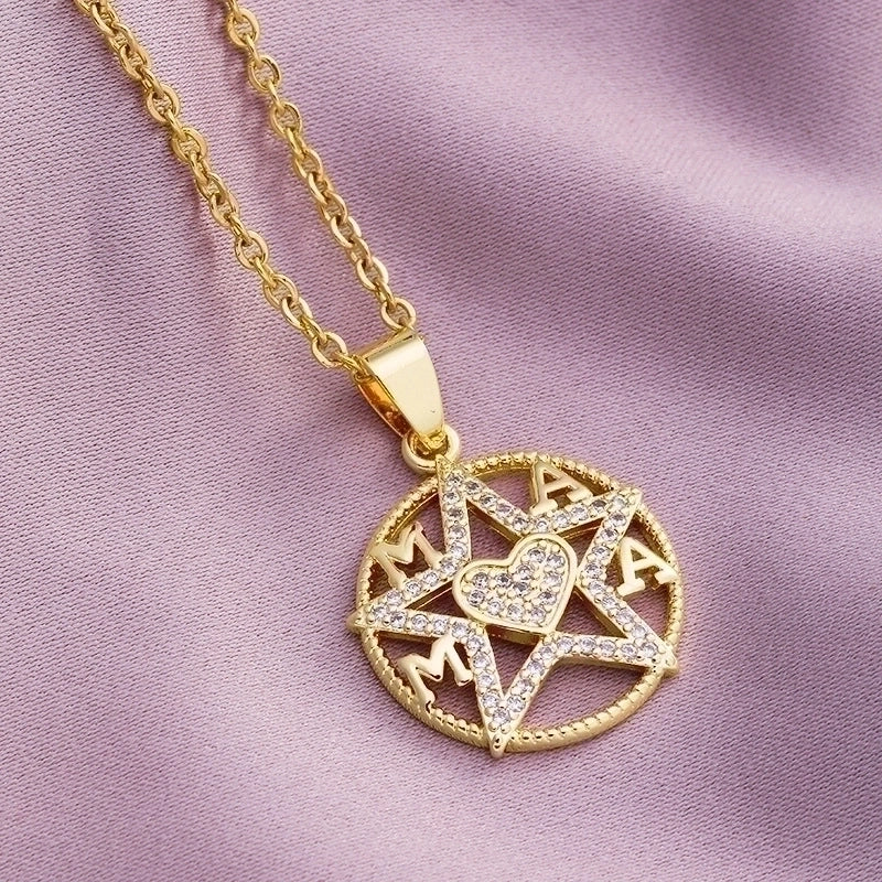 304 Stainless Steel Copper Fashion MAMA Plating Inlay Letter Heart Shape Zircon Pendant Necklace