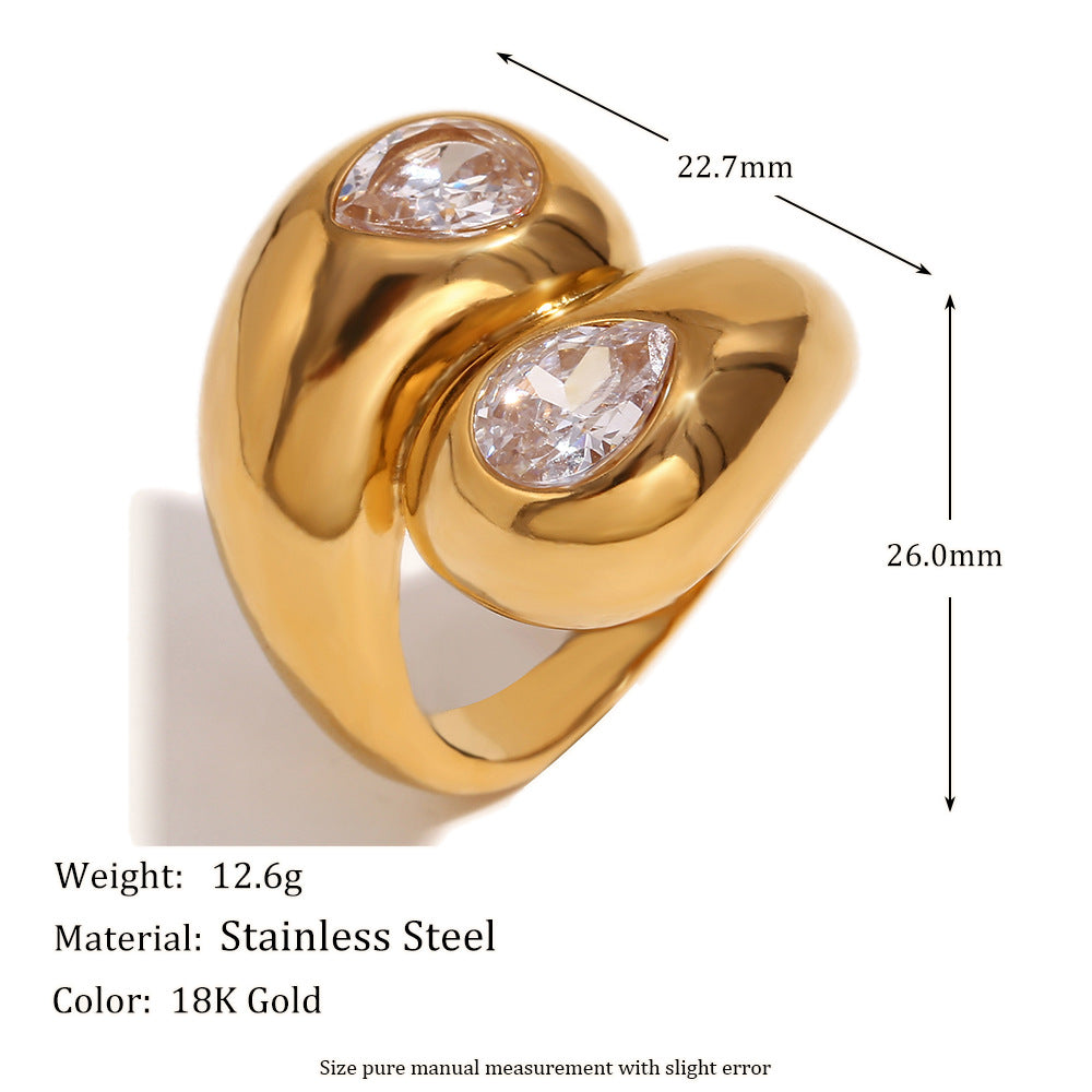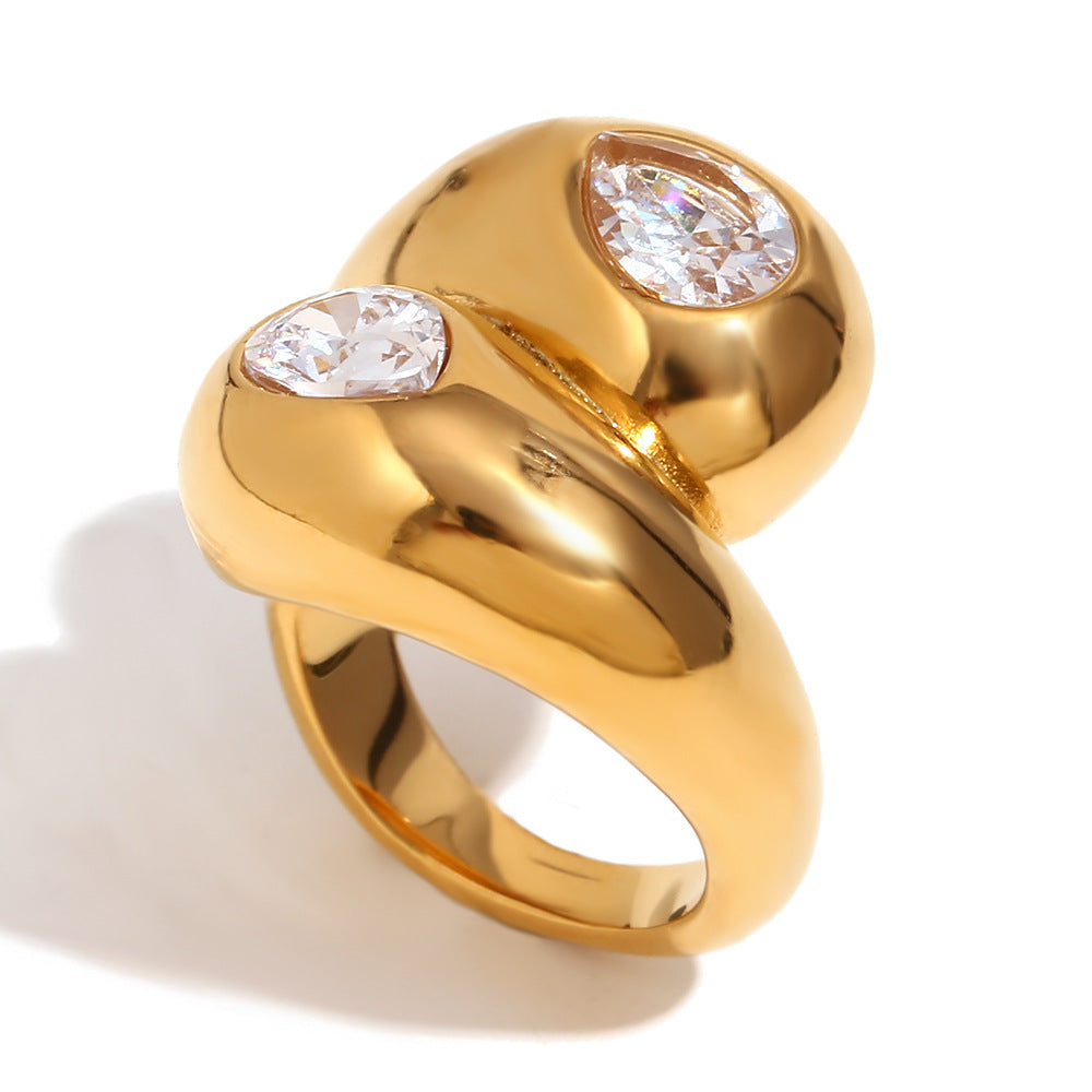 Fashion Niche Design Personality Hand Jewelry Stainless Steel Plated 18K Gold Double Head Zircon Snake Ring Female