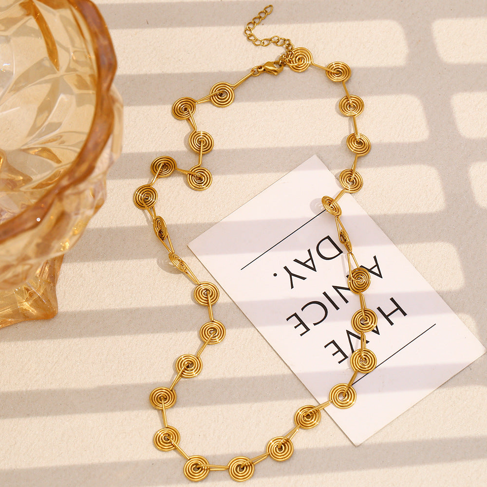 Fashion Niche Geometric Spiral Pendant Stainless Steel Plated 18K Gold Personality Hoop Necklace For Women