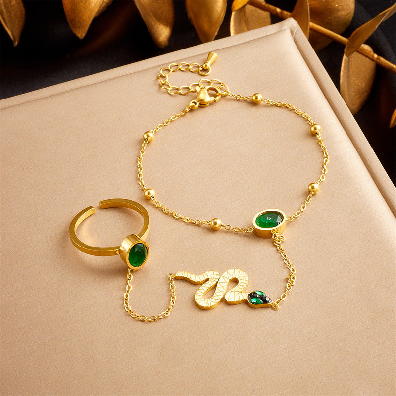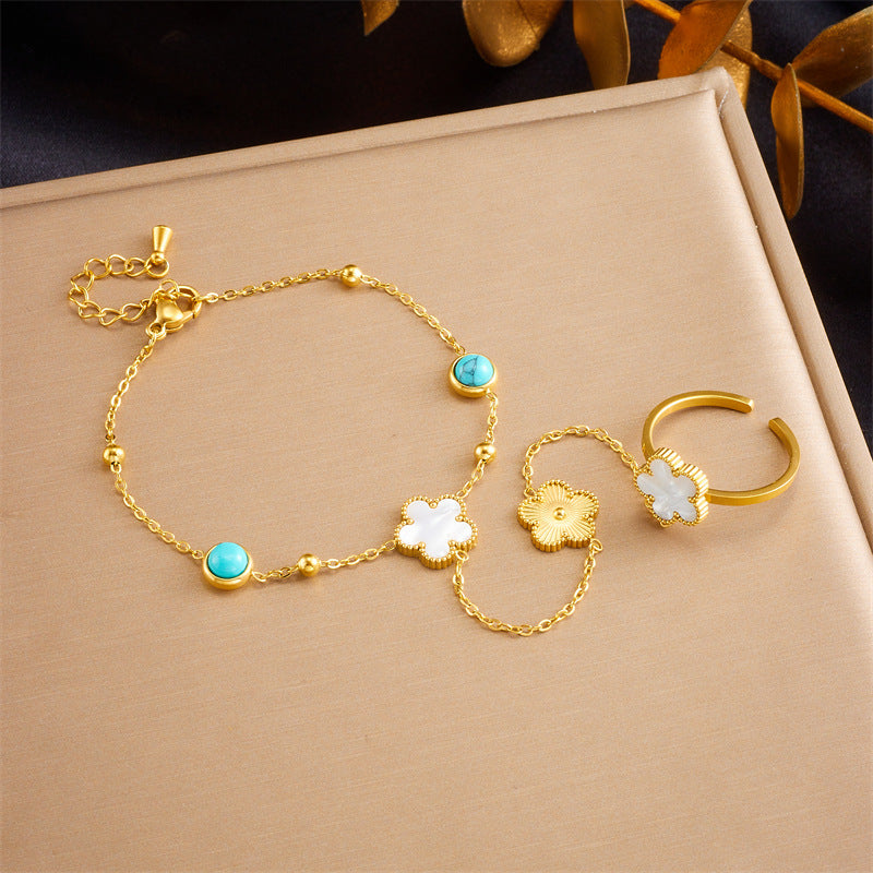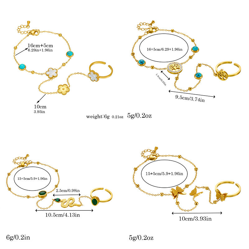 Fashion Niche Retro Stainless Steel Round Blue Turquoise Tree Of Life Flower Accessories Decorative Finger Bracelet