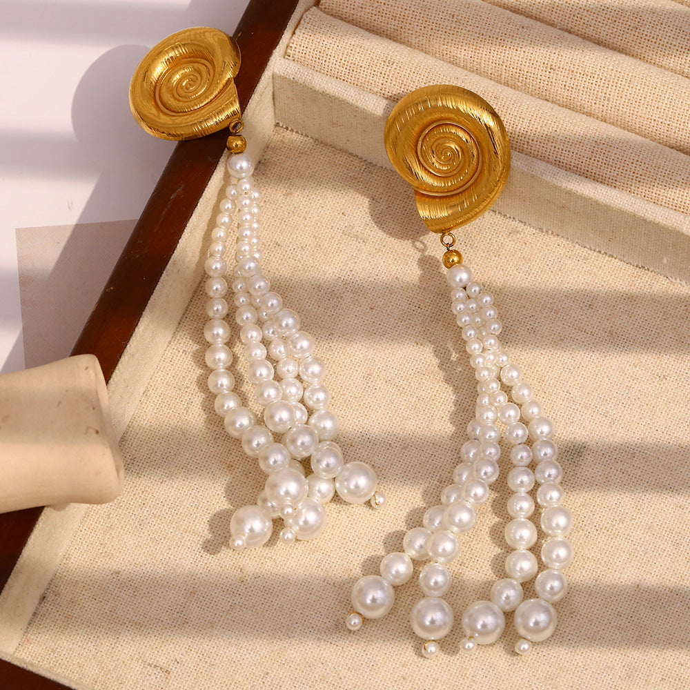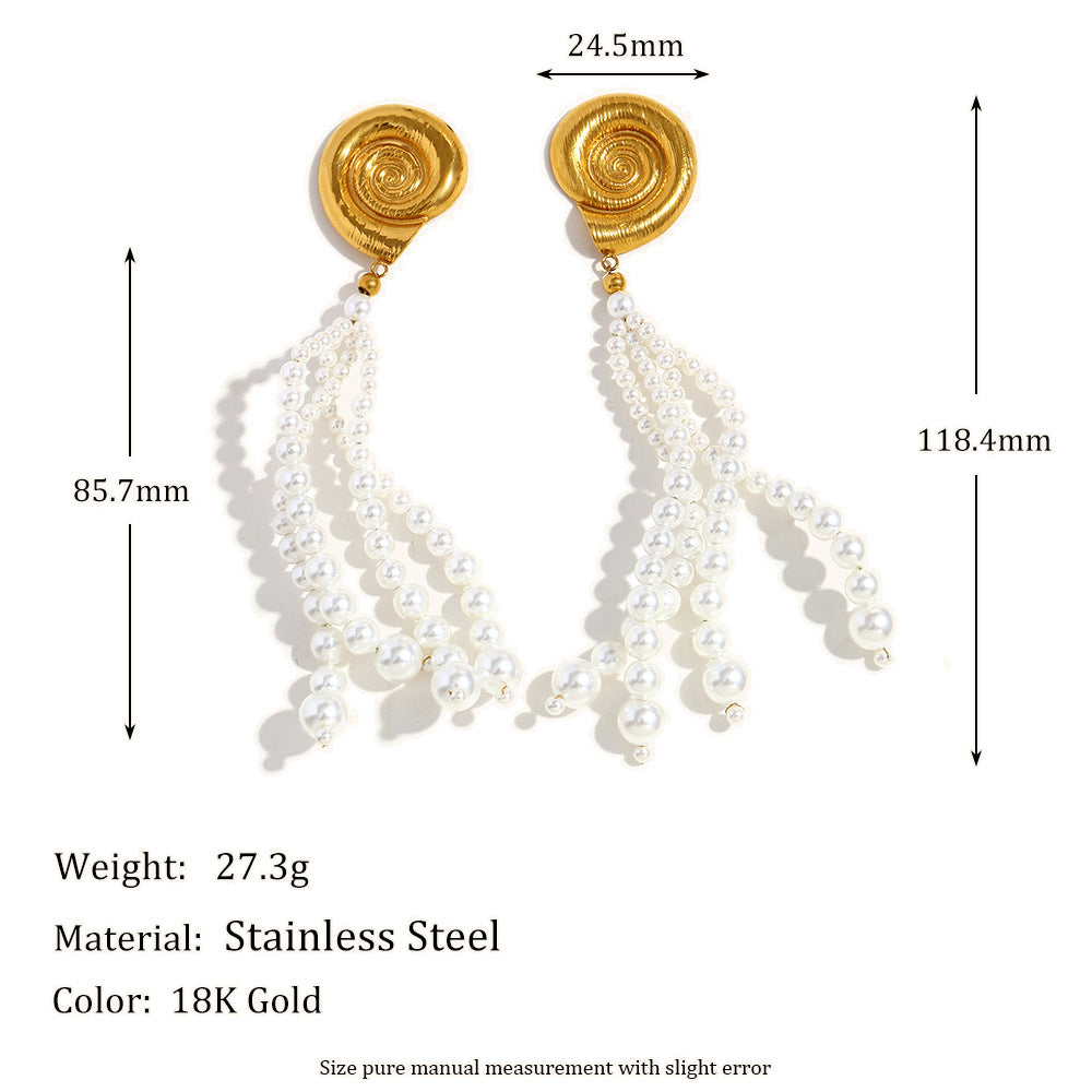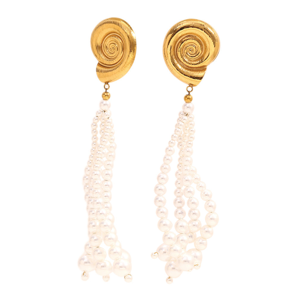 | Color | Imitation Pearl Tassel Conch Stud Earrings-Gold |