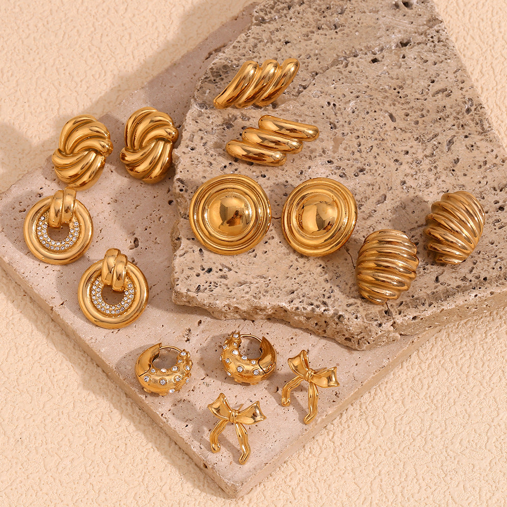 Be the first to review “Fashion Personality Niche Design Earrings Stainless Steel 18K Gold Plated Oval Bow Earrings For Women” Cancel reply