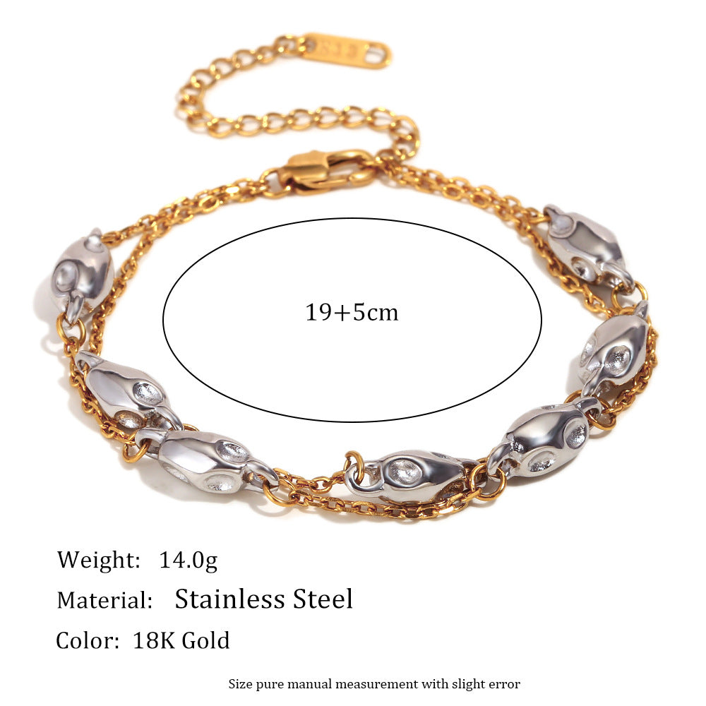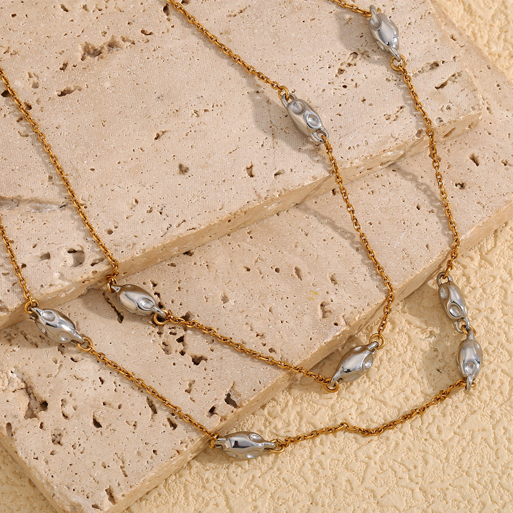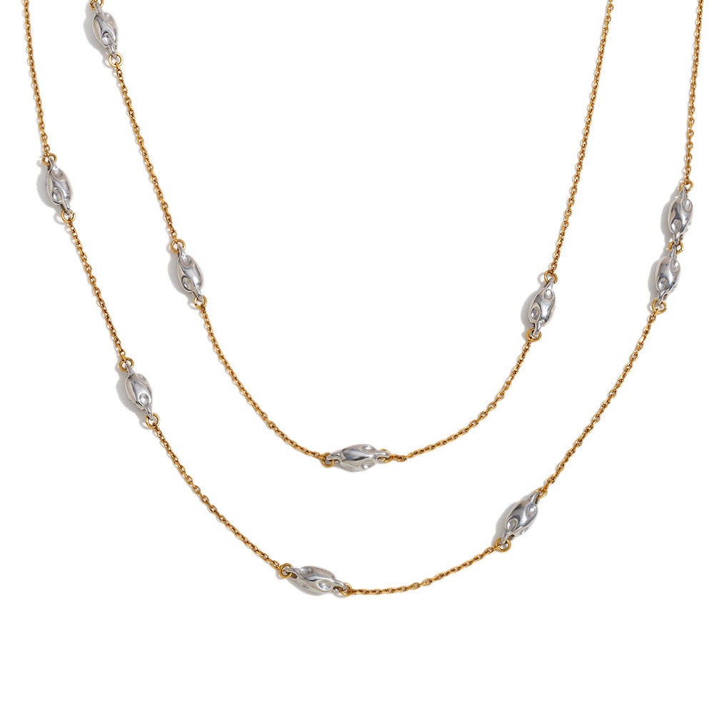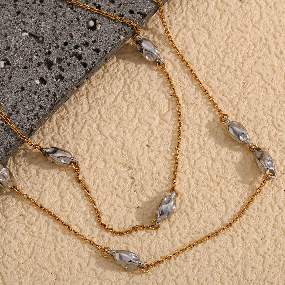 Fashion Personality Niche Irregular Pendant Stainless Steel Plated 18K Gold Two-Color Double-Layer Bead Chain Necklace For Women