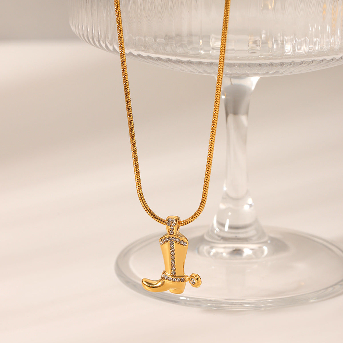 Fashion Personality Stainless Steel Diamond Cowboy Boots Pendant Necklace Hip Hop Trend Titanium Steel Snake Bone Chain Necklace
