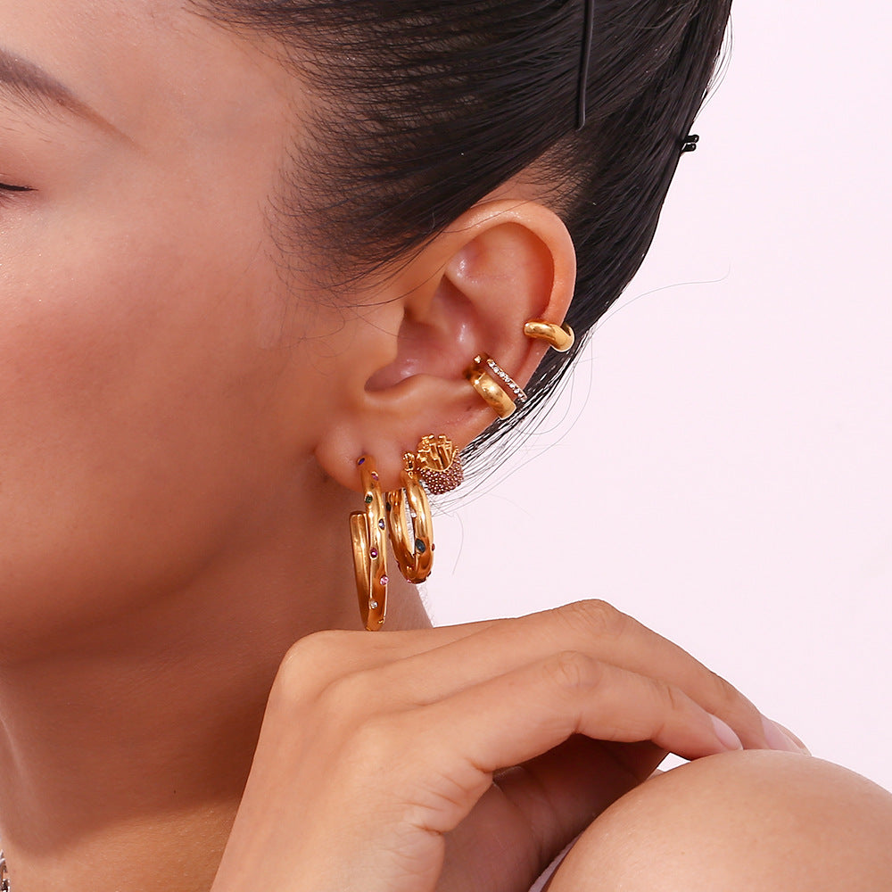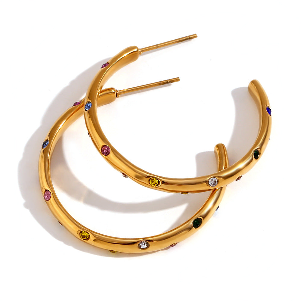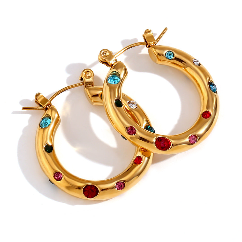 | Color | Extra Large Zircon Inlaid Earrings – Colored Diamond, Gold Earrings – Colored Zircon |