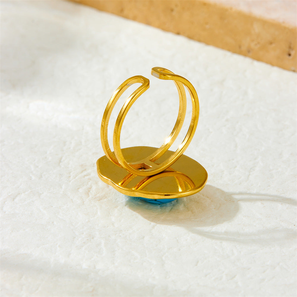 Fashion Retro High-End Open Adjustable Line Oval Inlaid Blue Turquoise Accessories Stainless Steel Ring