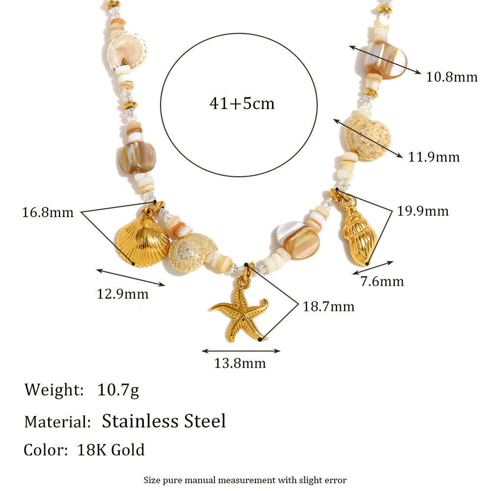 Fashion Retro Niche Bracelet Stainless Steel Plated 18K Gold Ocean Series Pendant Necklace