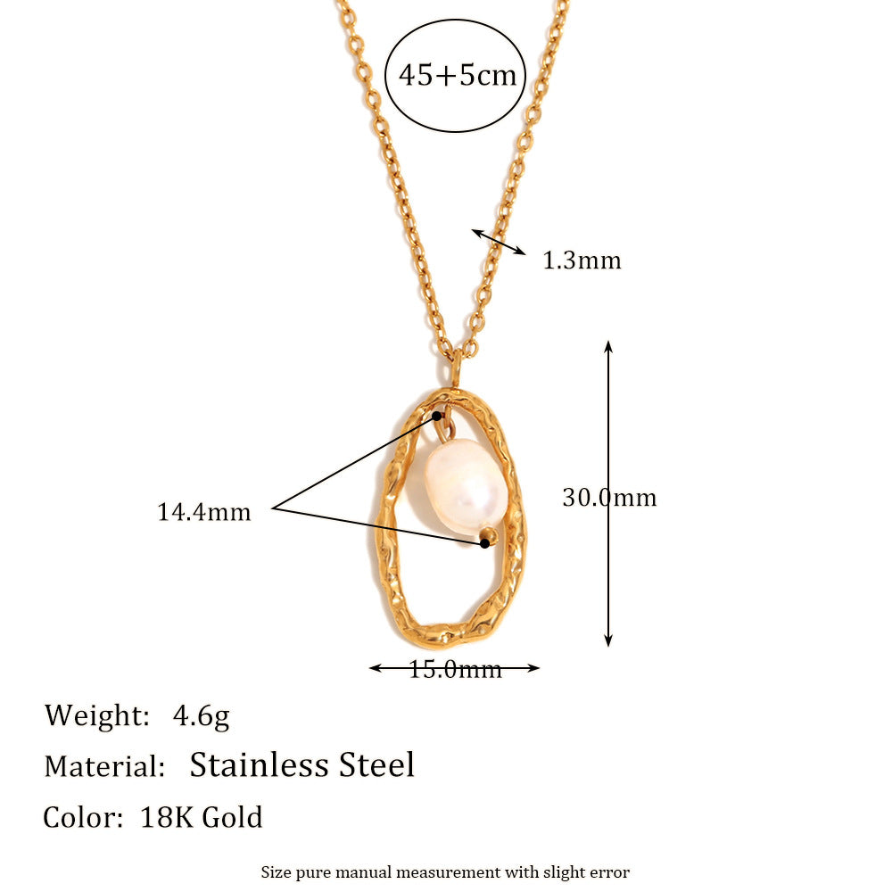 Fashion Retro Personality Pendant Stainless Steel Plated 18K Gold Niche Pearl Pendant Necklace For Women