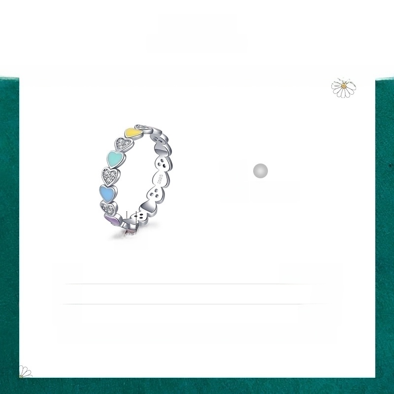 Fashion S925 Sterling Silver Color Enamel Heart-shaped Index Finger Ring