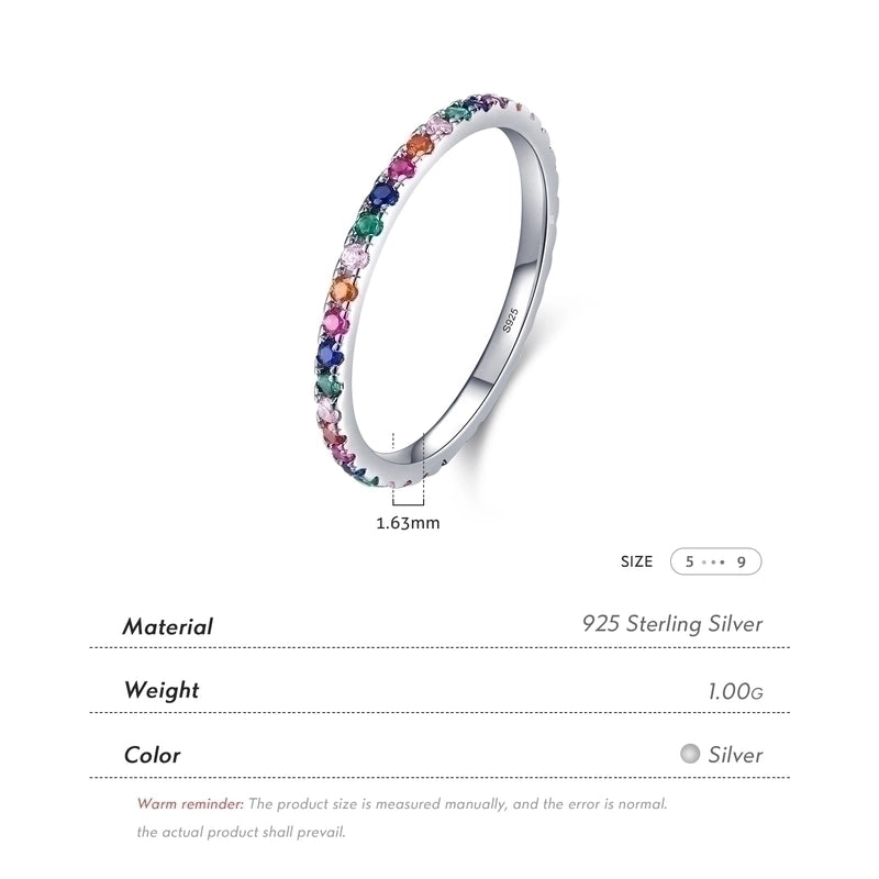 Fashion S925 Sterling Silver Color Rainbow Simple Diamond Ring