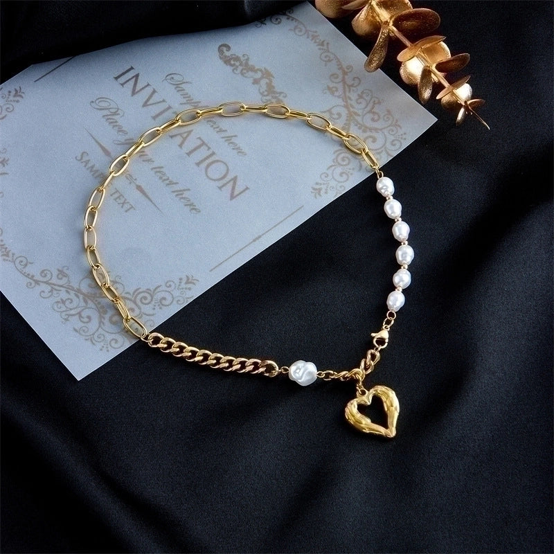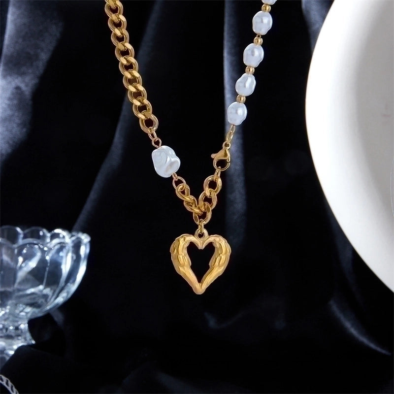 Fashion Simple Hollow Heart-shaped Titanium Steel Pearl Necklace
