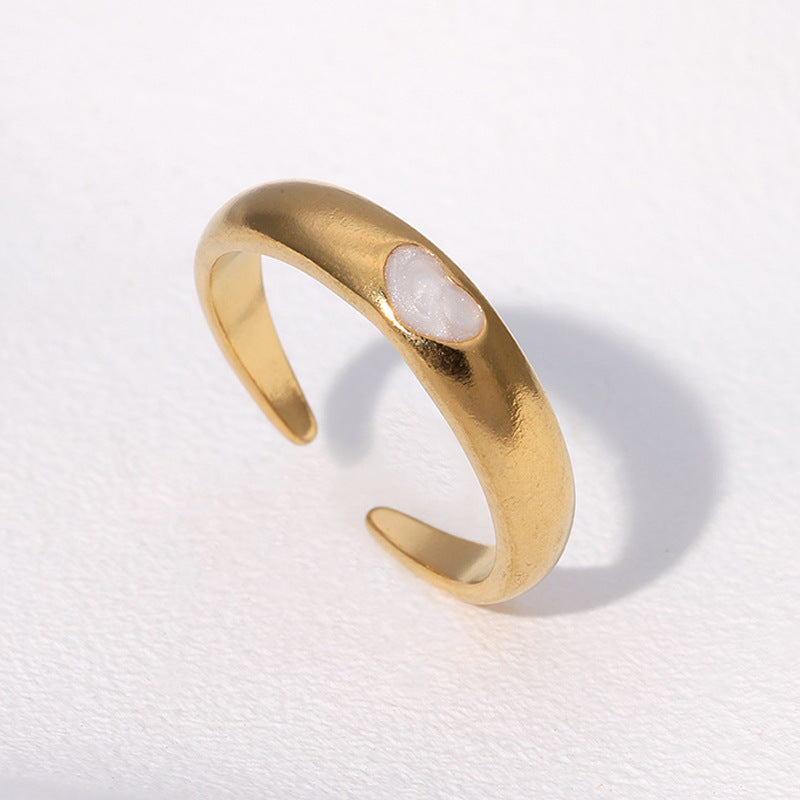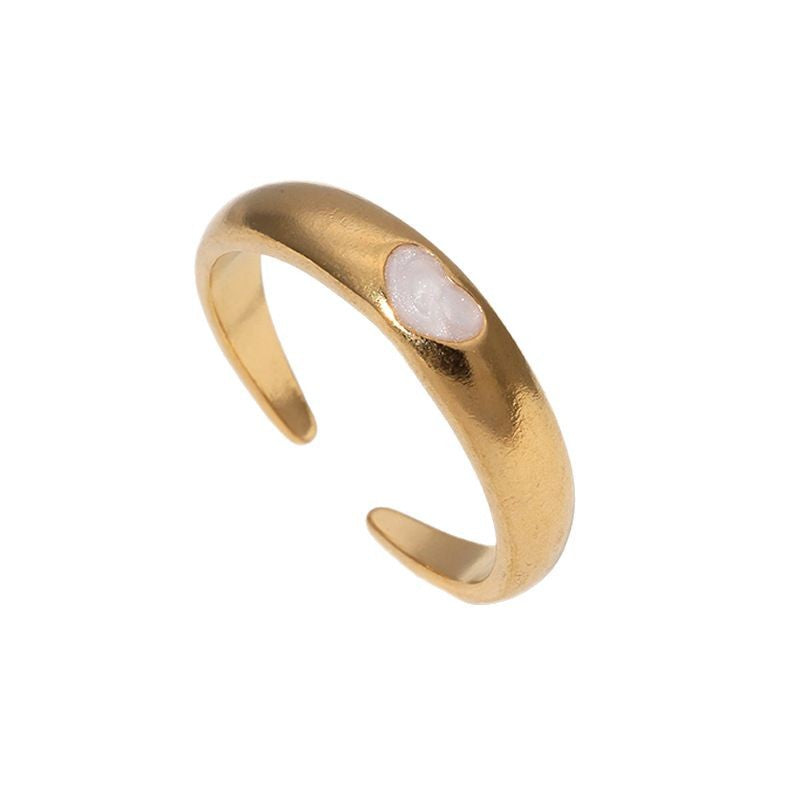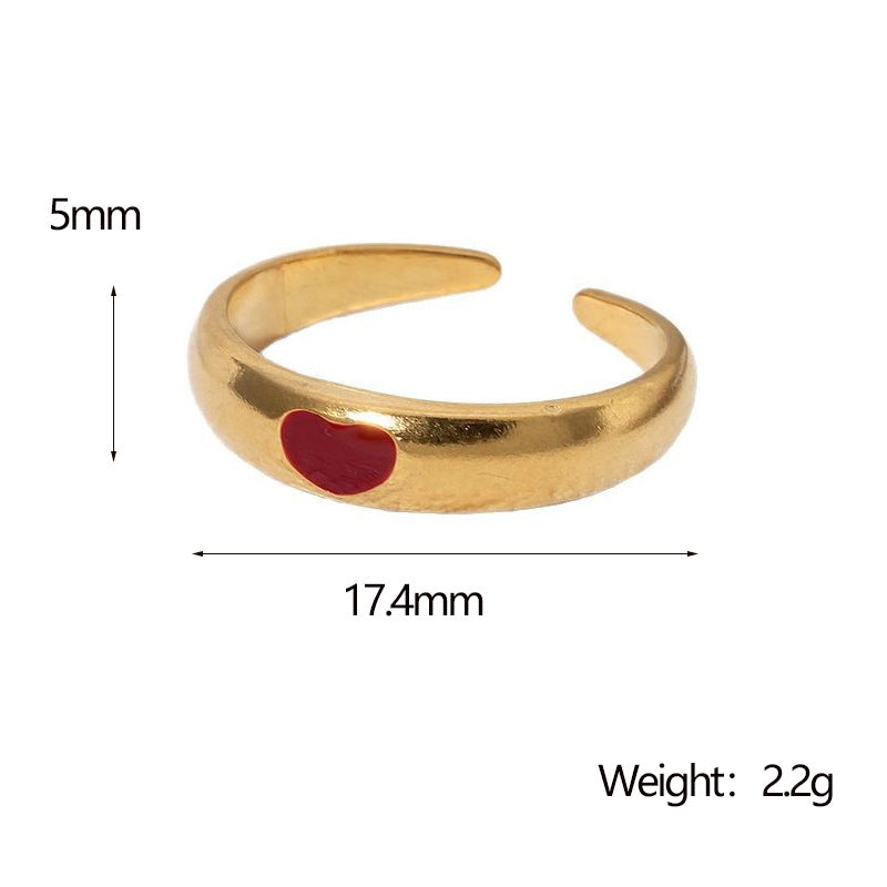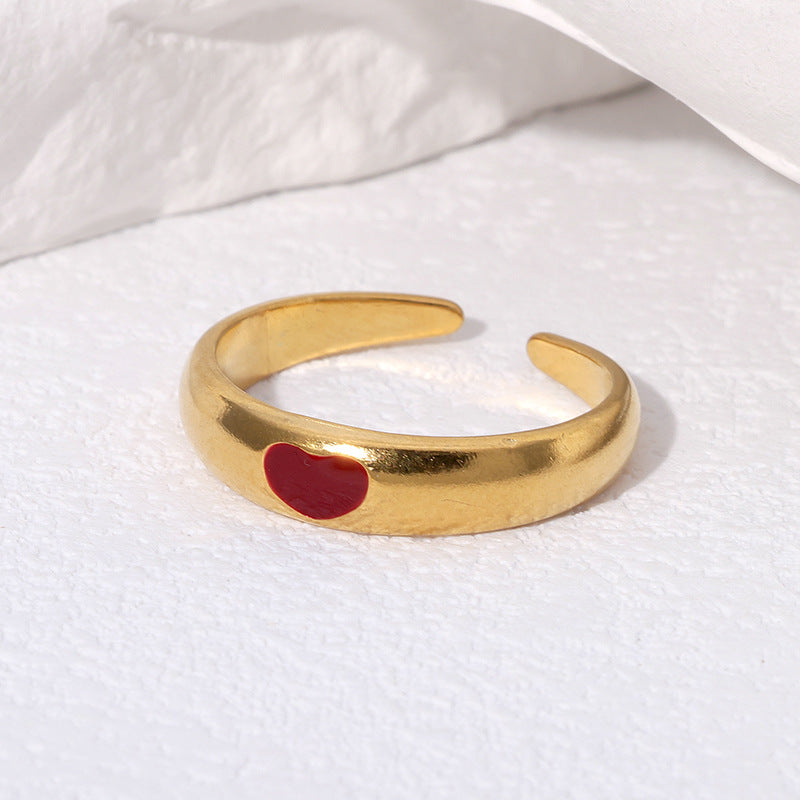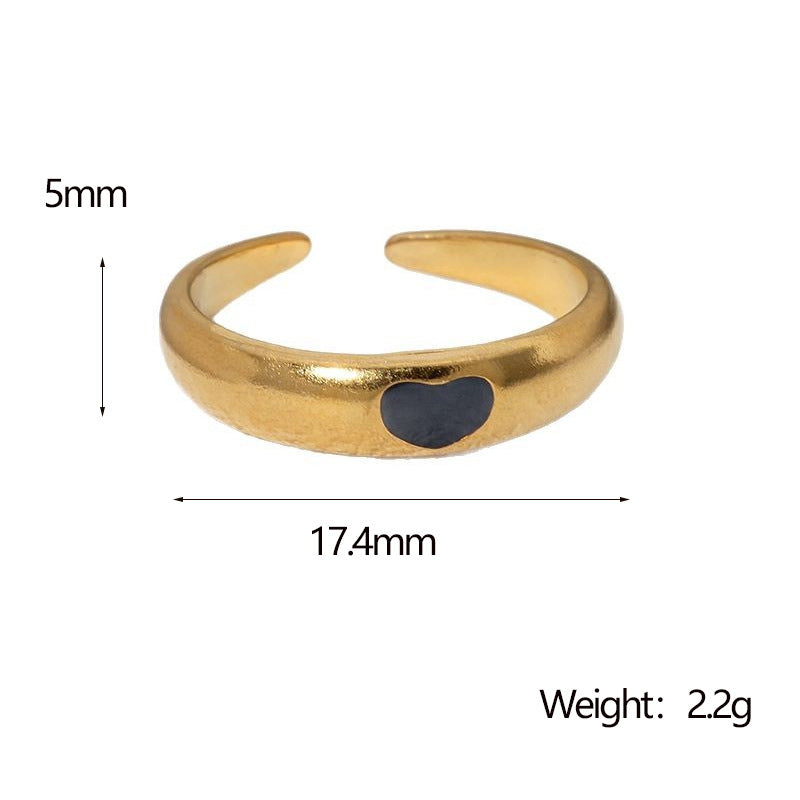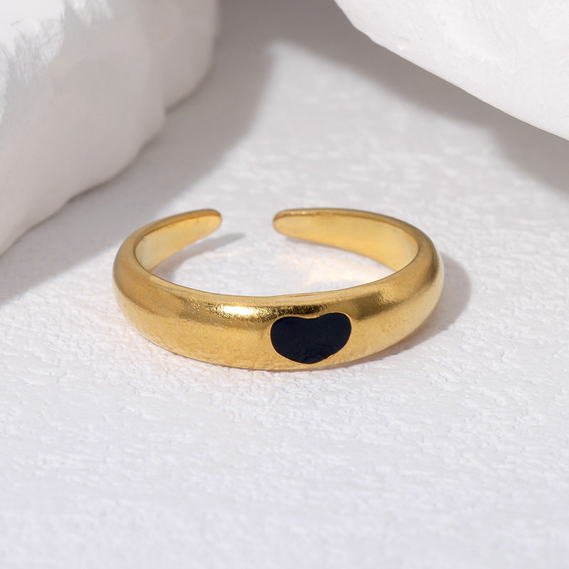 Fashion Simple Retro Love Heart Shaped Stainless Steel Ring Open Gold Plated Ring