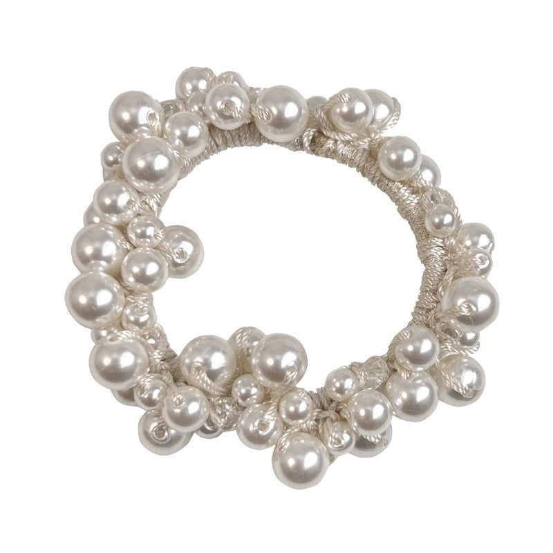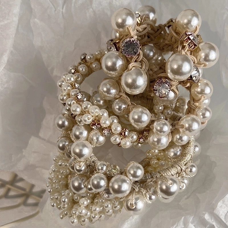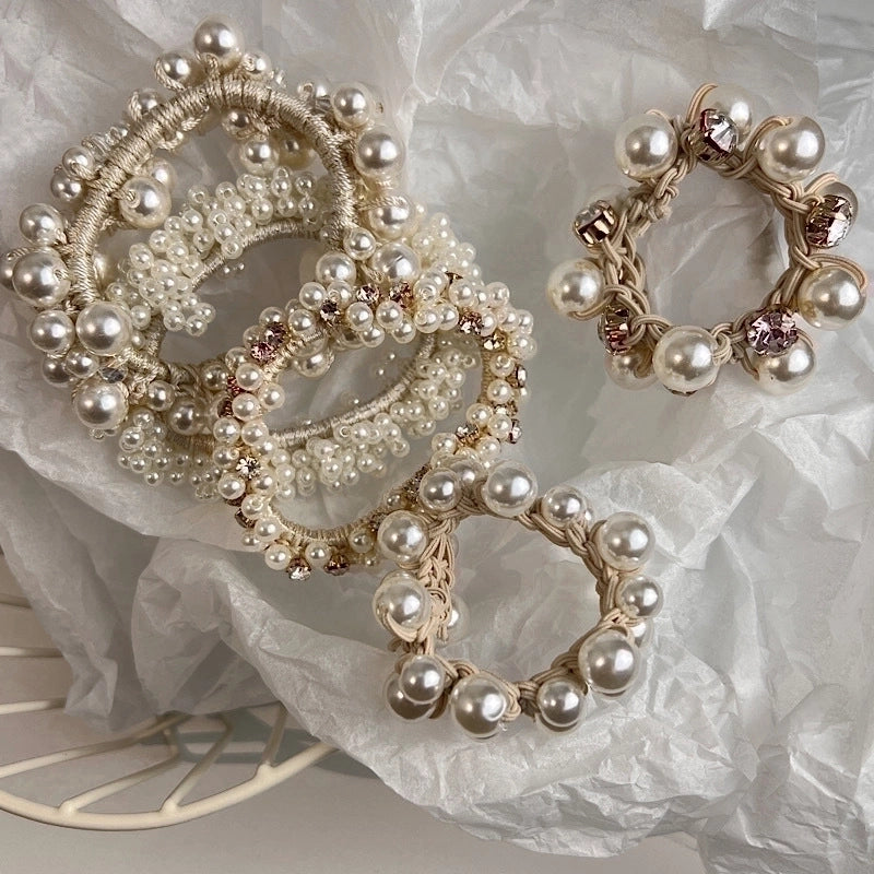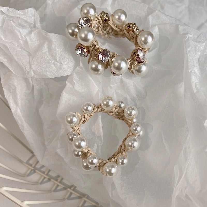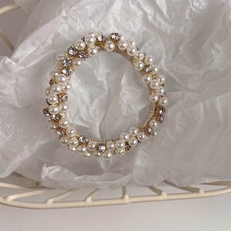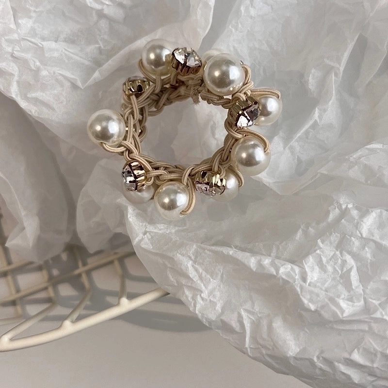 Fashion Simple Rubber Imitation Pearl Inlaid Rhinestone Hair Tie